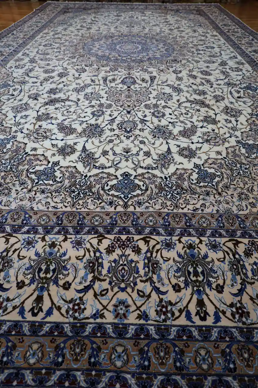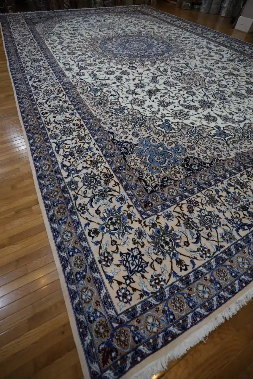 With its impressive scale and timeless palette, this Naein rug is ideal for grand living rooms, formal dining areas, or large open interiors. Its classic elegance and refined materials make it a statement piece that embodies Persian artistry and enduring value.