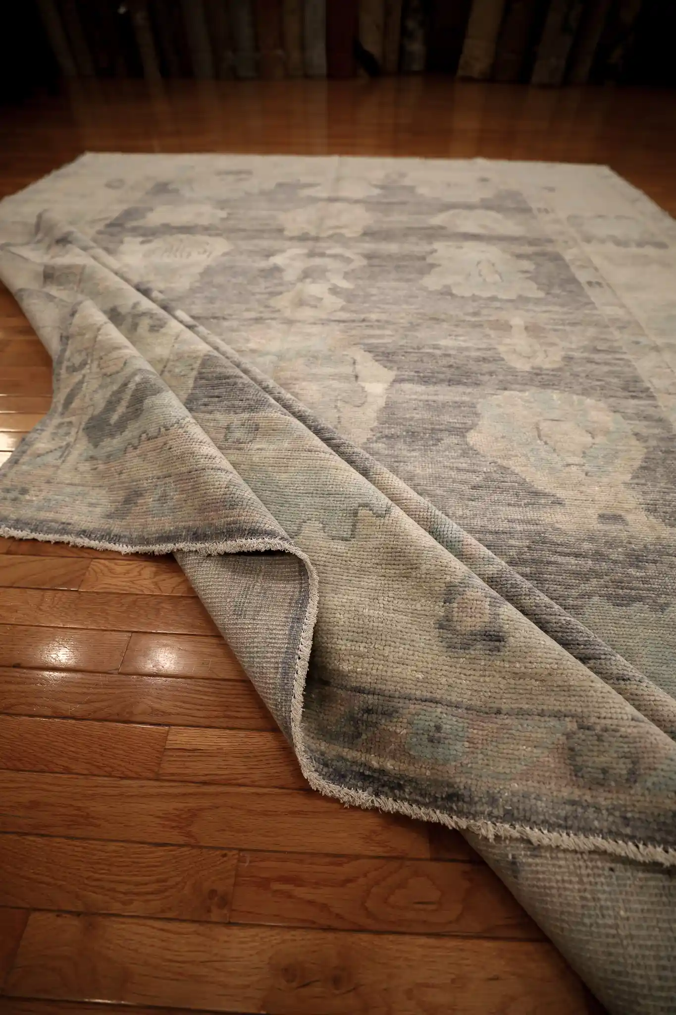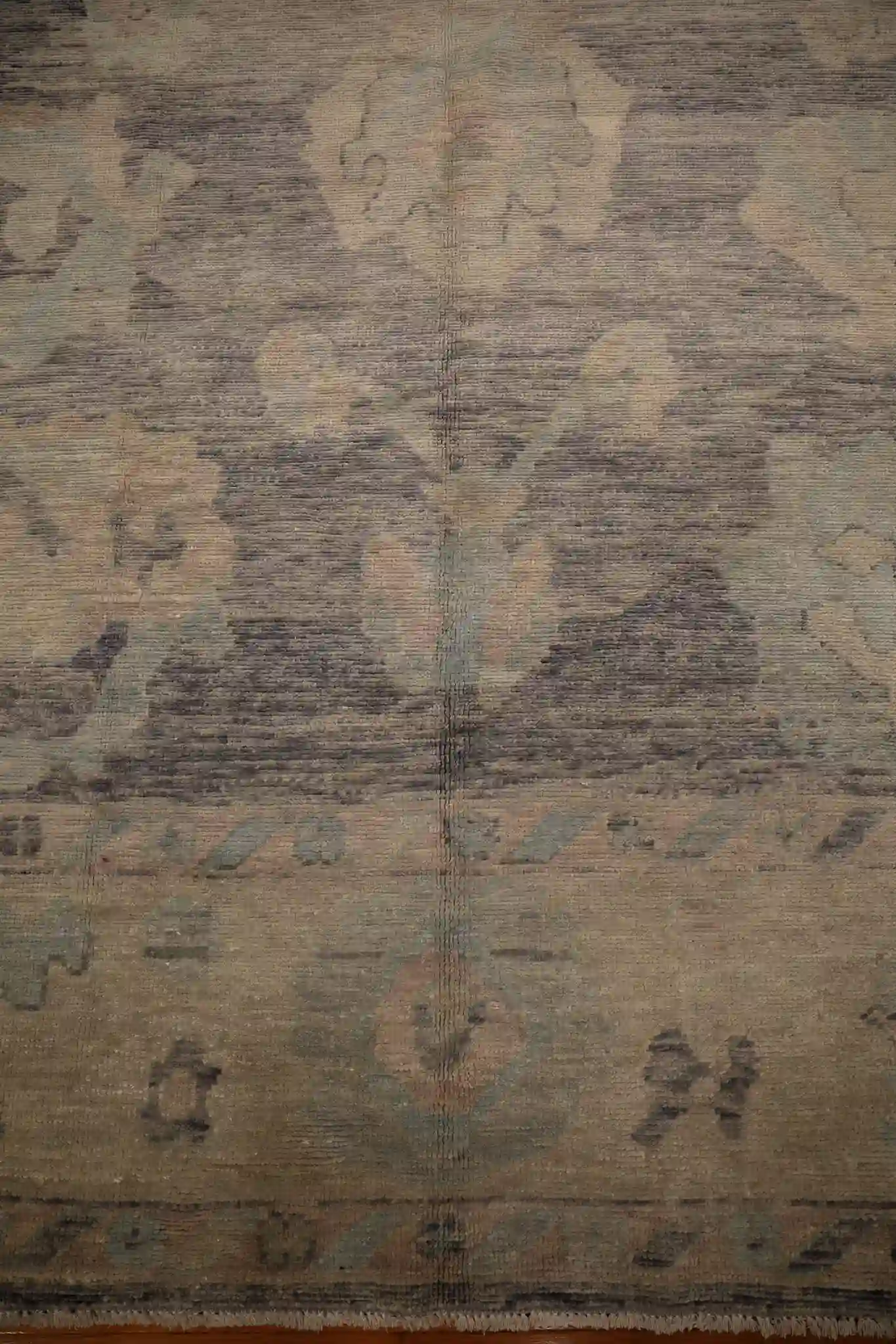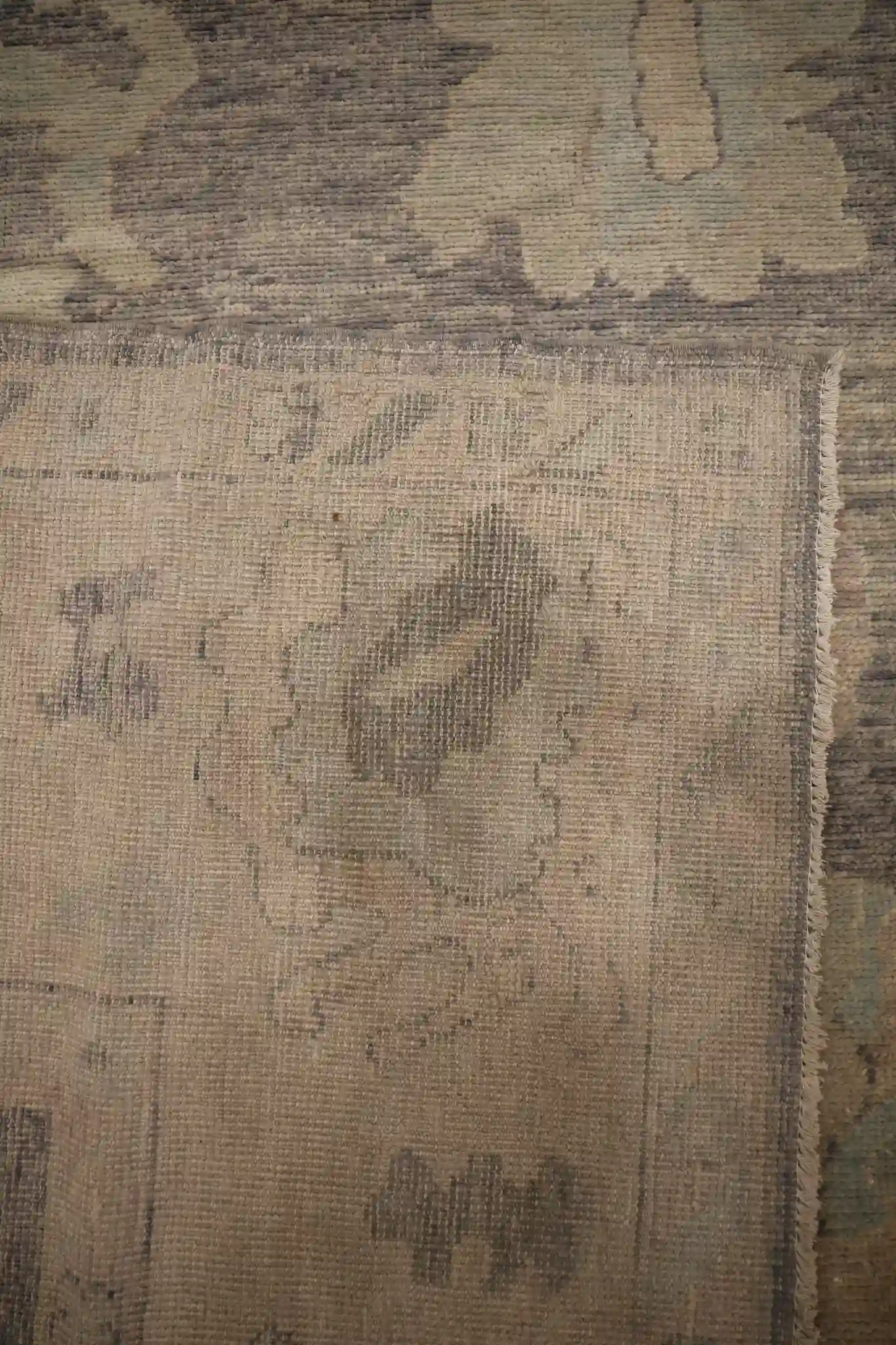 Turkish Oushak rugs are known for their generous scale and soft, desaturated colors that reflect centuries of Anatolian weaving practices. Modern hand-knotted versions like this one employ quality wool to produce a plush yet sturdy pile, with intentional color variations that mimic the natural aging of antique pieces. The open layout keeps the pattern airy and prevents it from feeling heavy in larger rooms.