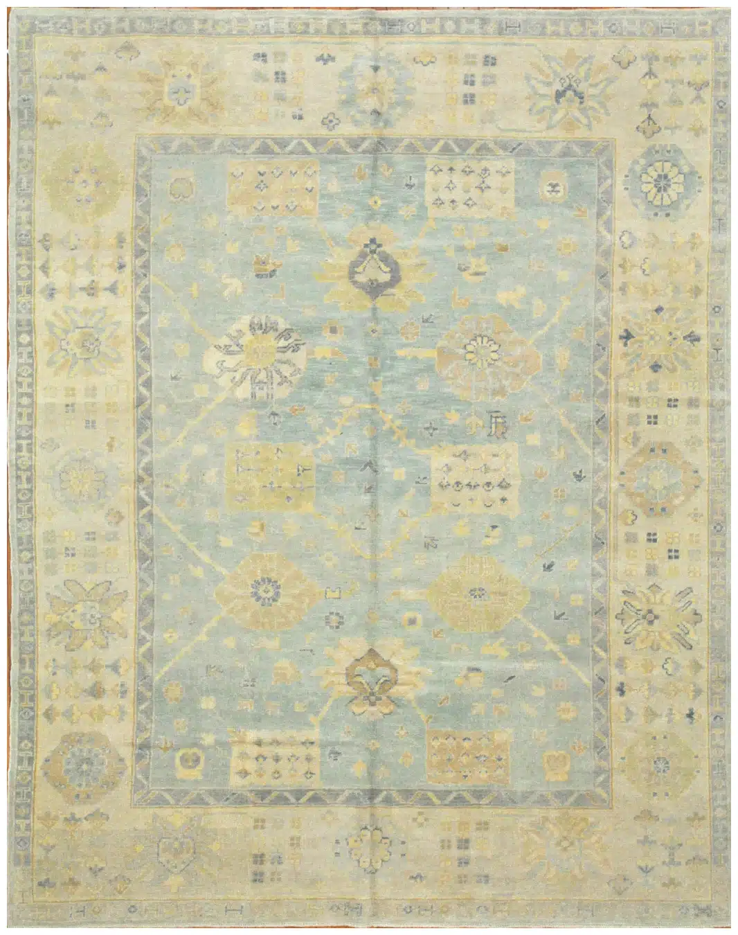 9′ x 12′ Pale Blue Fine Hand-Knotted Turkish Oushak Rug – Transitional Wool