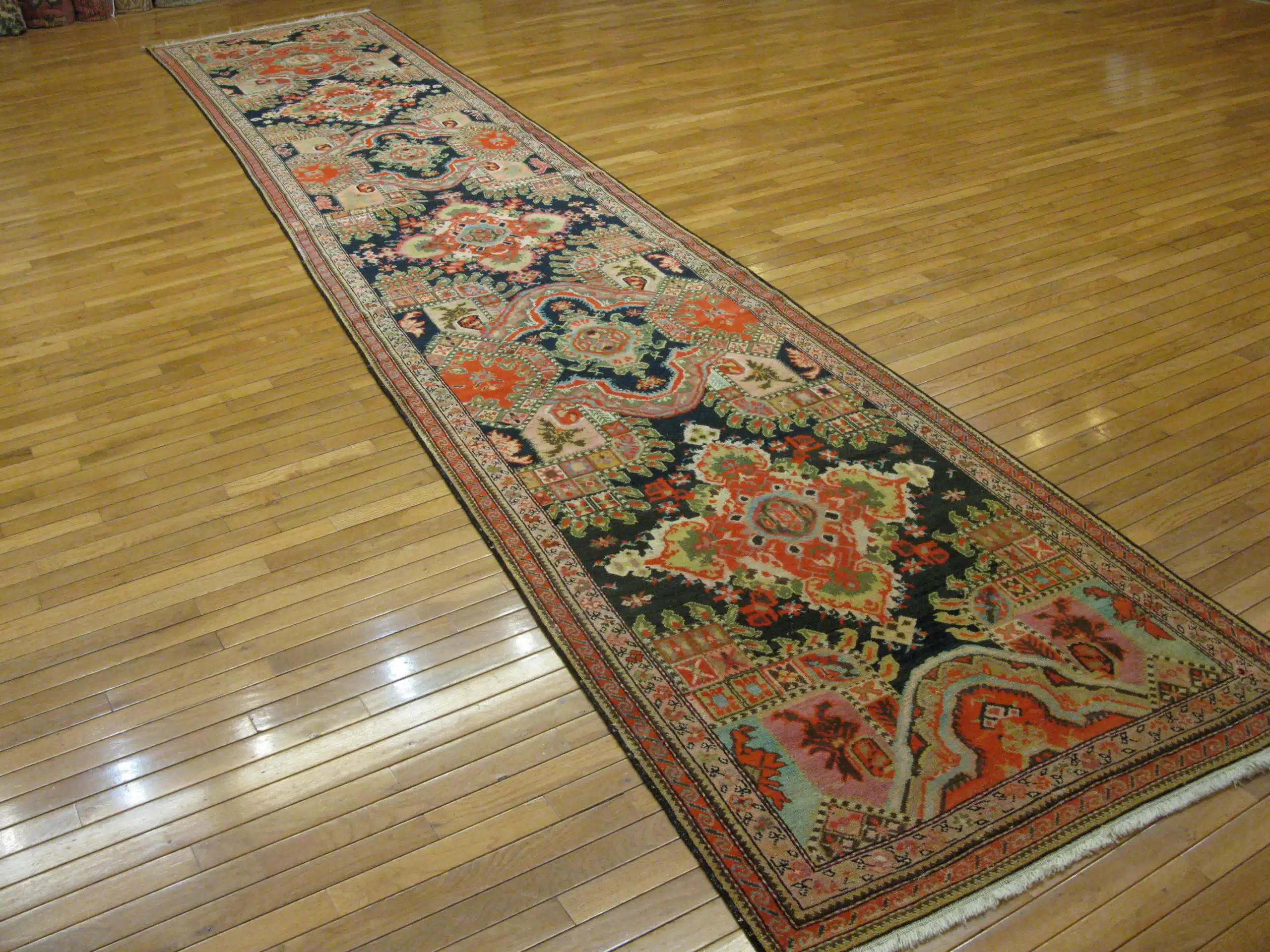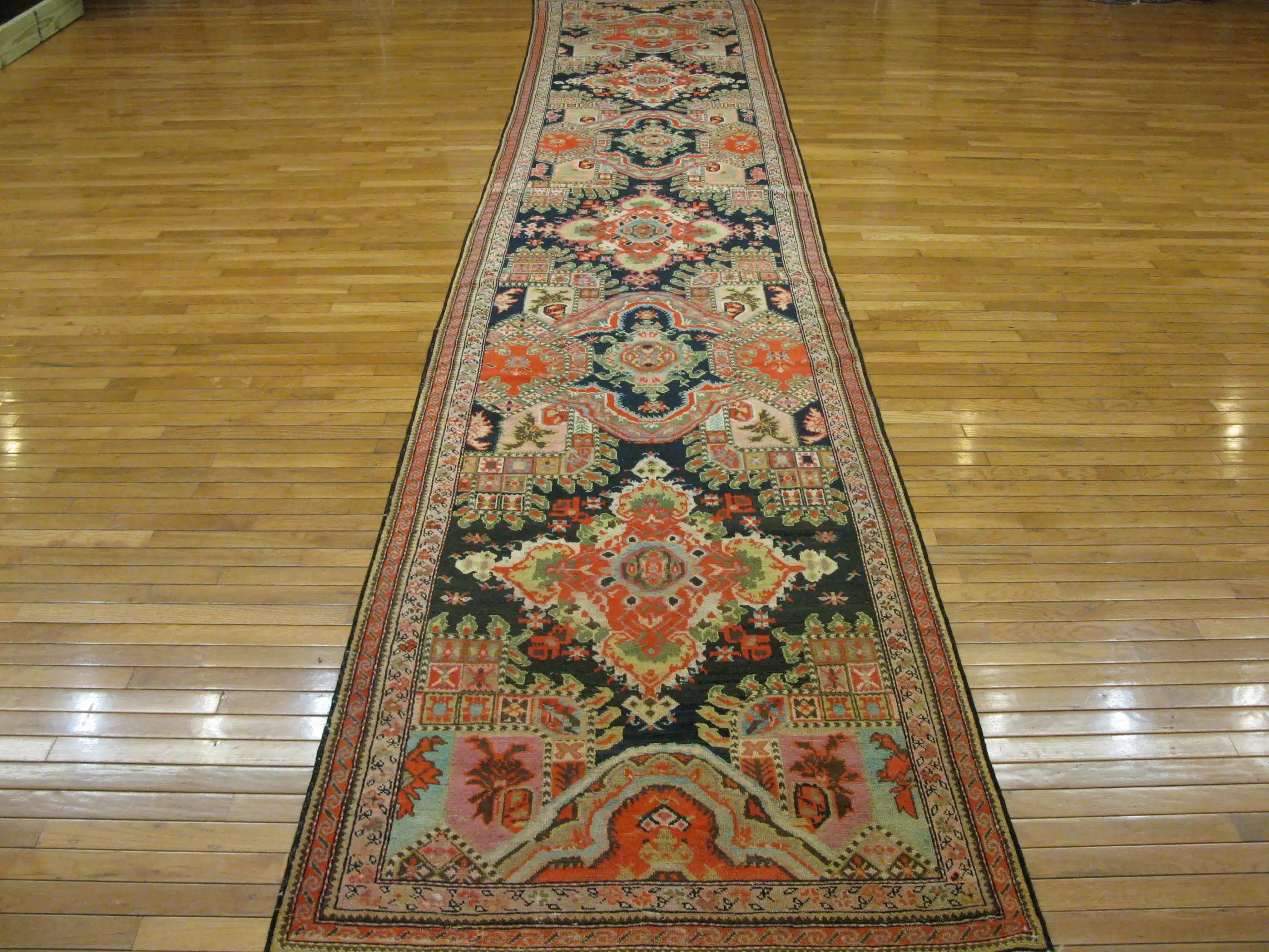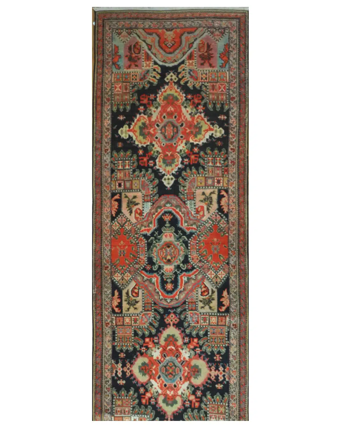 Karabagh runners from the late 19th to early 20th century are known for their bold geometric patterns and rich primary colors, woven by village artisans with thick wool pile for exceptional durability. These long pieces often feature repeating medallions to guide the eye in narrow spaces, with natural dyes that remain crisp yet soften with age. This example’s great condition and vibrant palette highlight the fine tribal craftsmanship of the period.