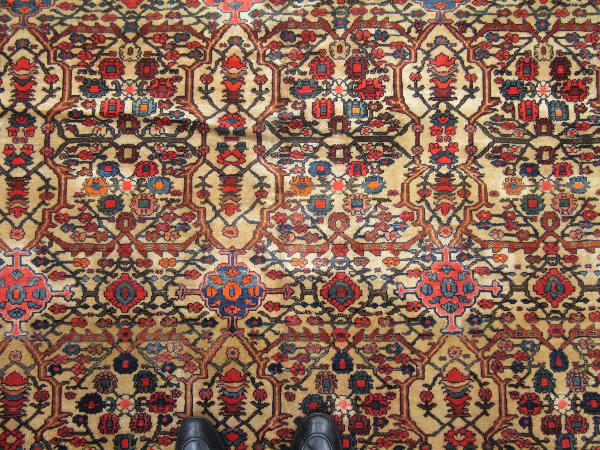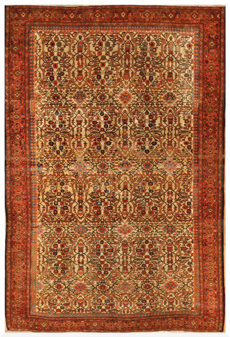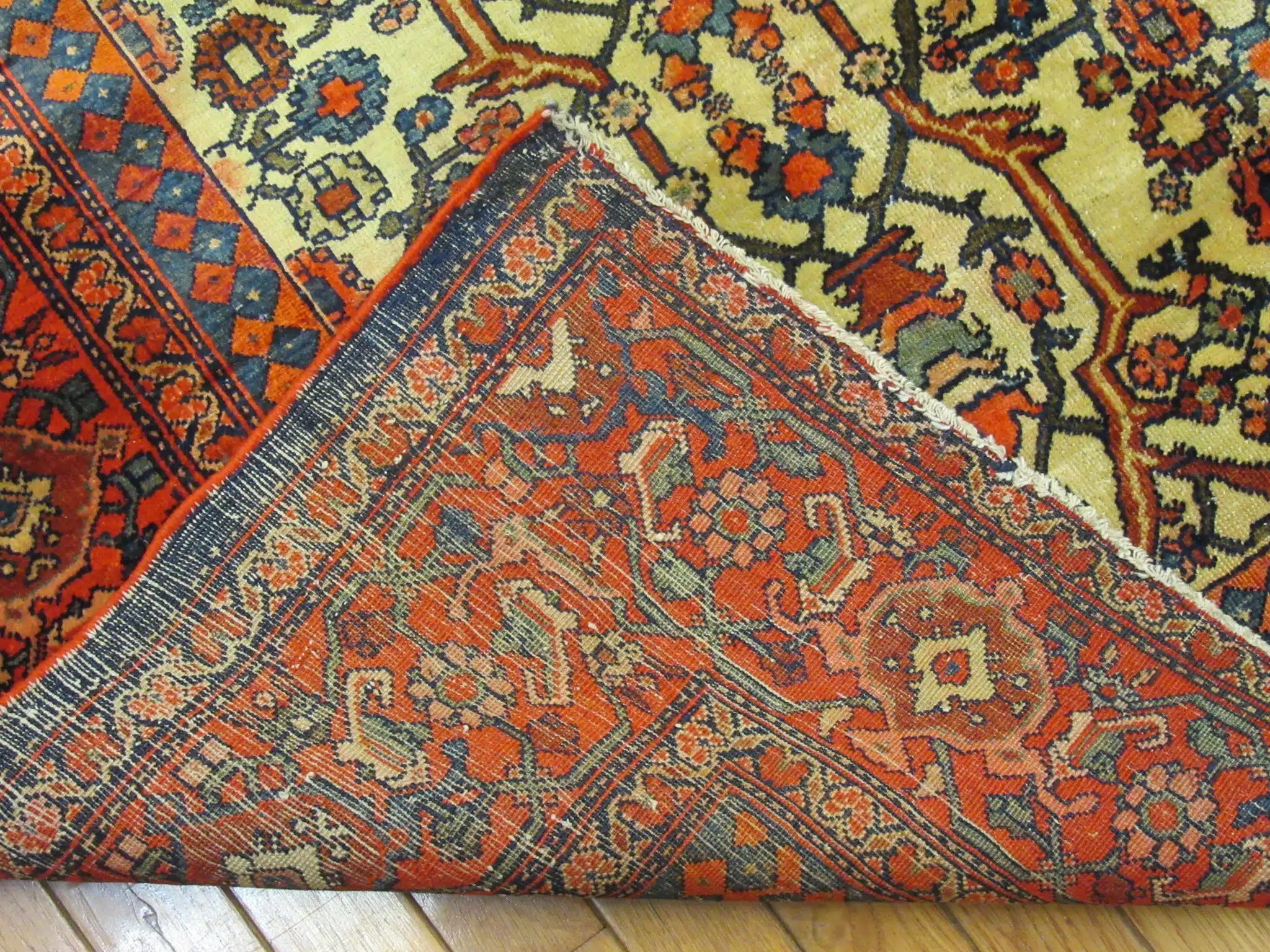 Sarouk Farahan rugs are celebrated for their tight knotting, high quality wool, and balanced compositions that combine elegance with durability. This example has developed a soft, harmonious patina over time, with the natural dyes creating subtle variations that add depth and character. The traditional style reflects the region’s expertise in creating timeless, finely detailed carpets.