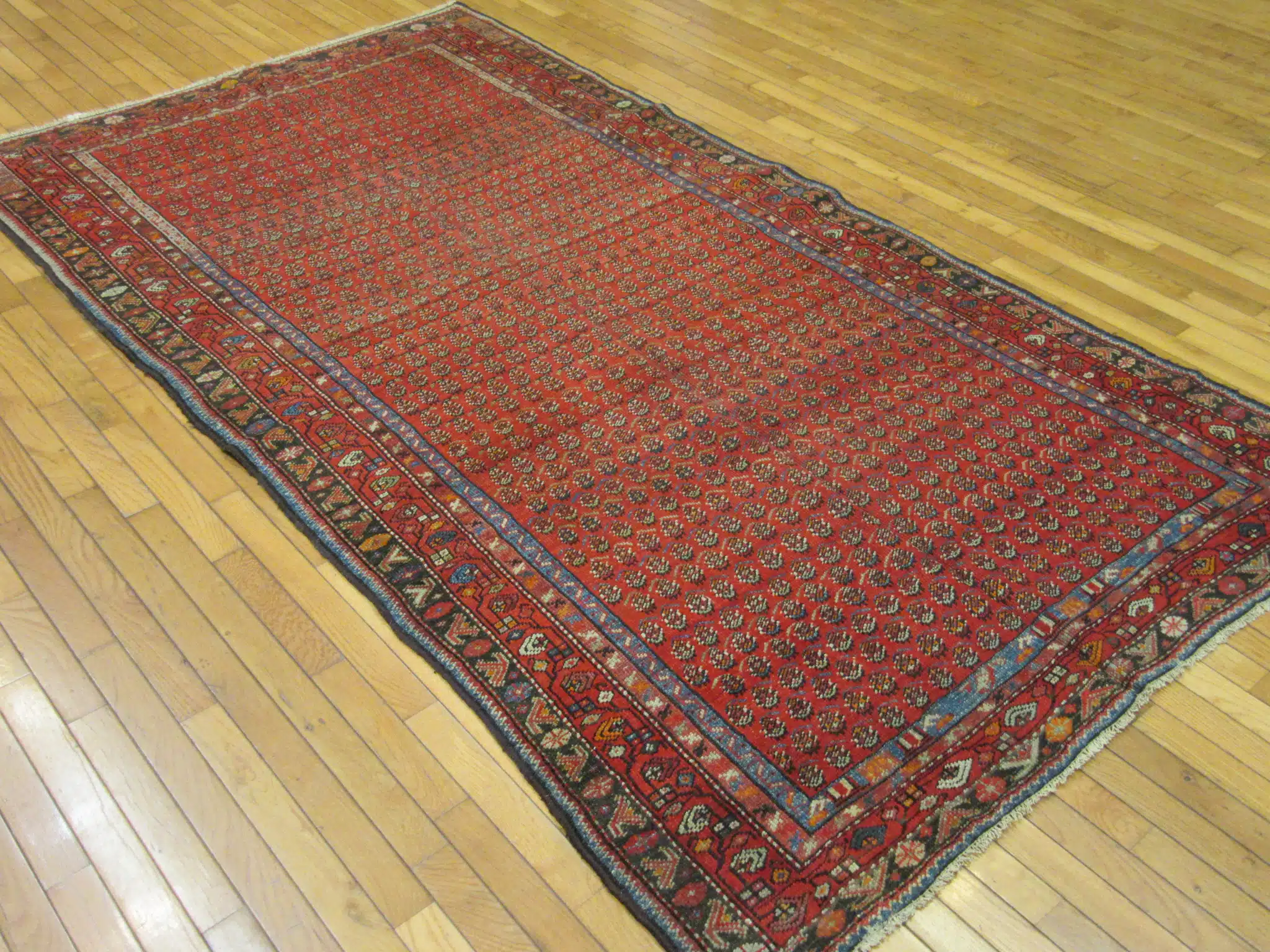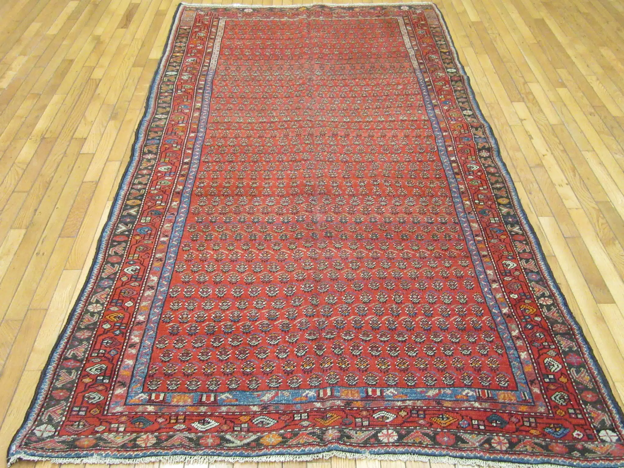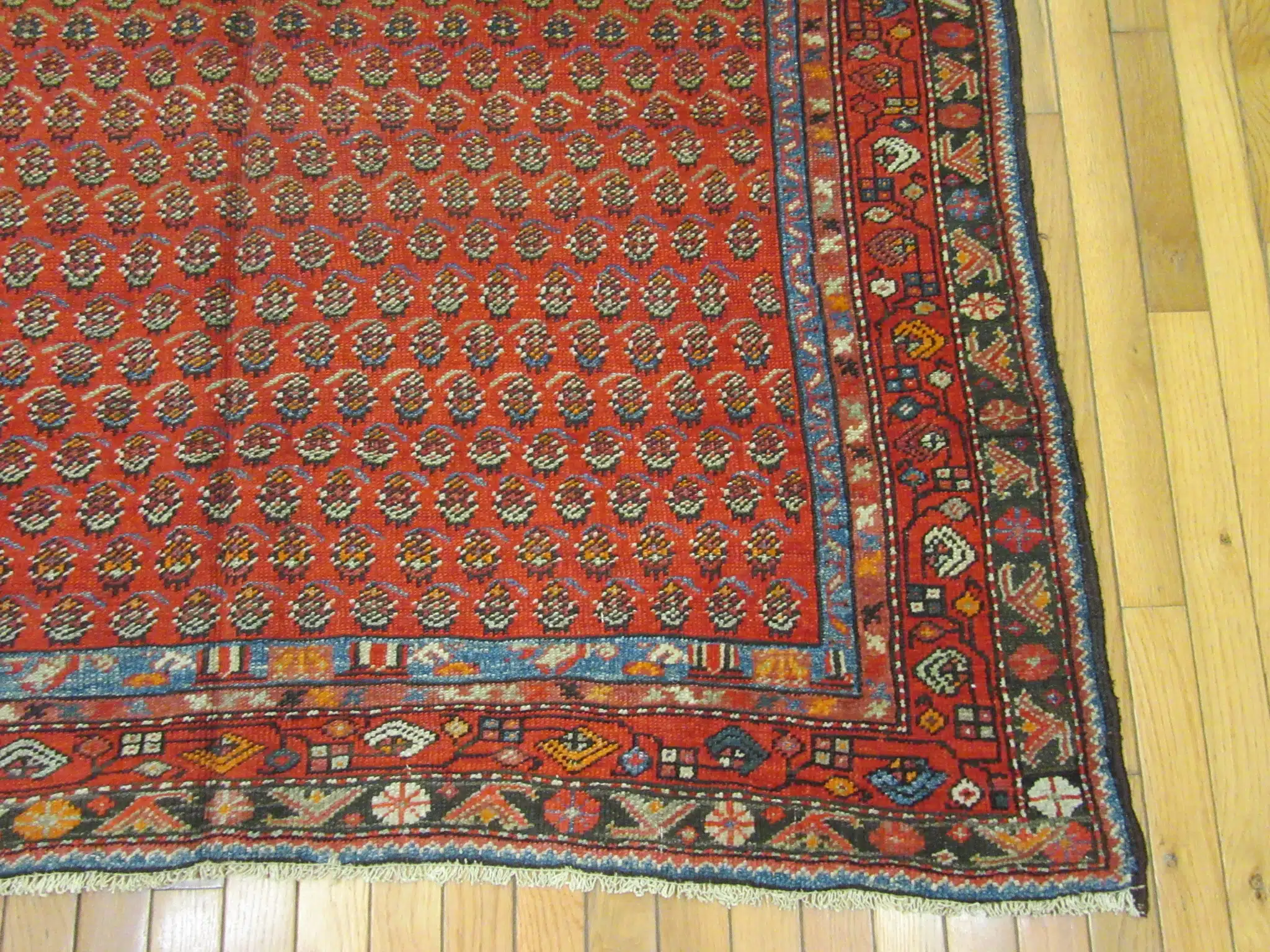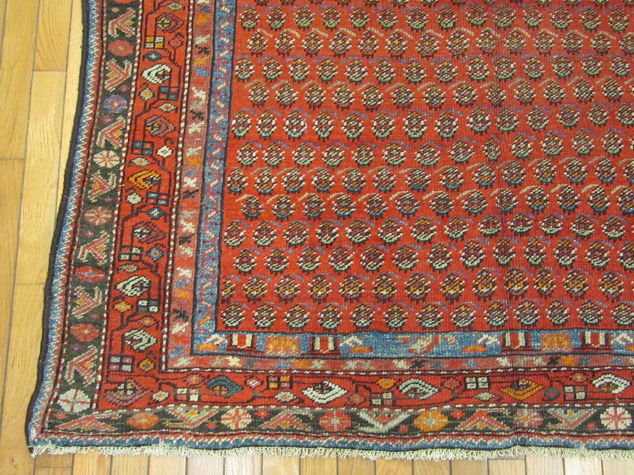 This antique Persian Malayer rug presents a beautifully balanced all-over Herati pattern, a design traditionally associated with village weaving from western Iran. The field is densely filled with small-scale floral and rosette motifs, creating a rhythmic and harmonious surface that feels both detailed and refined.