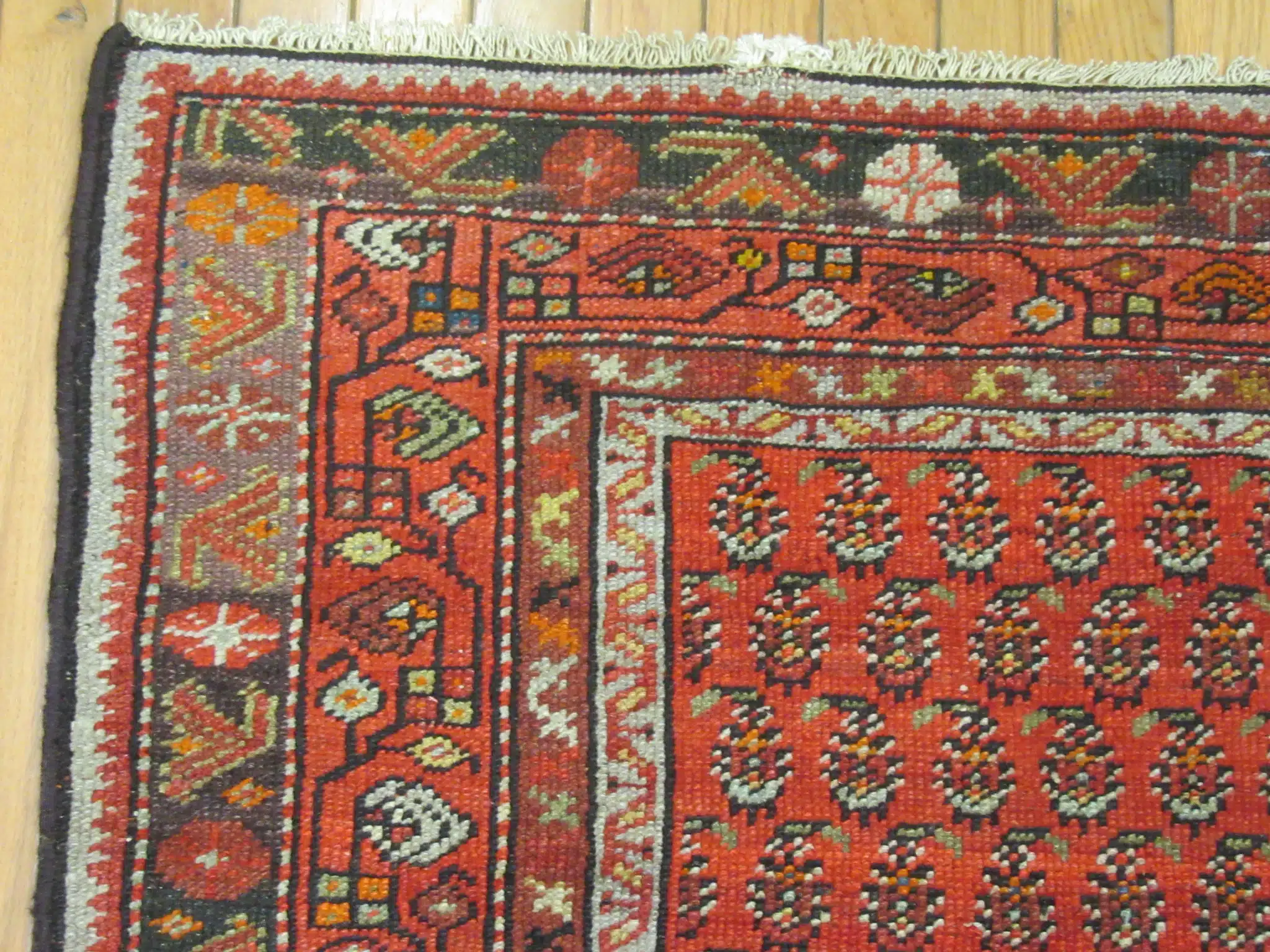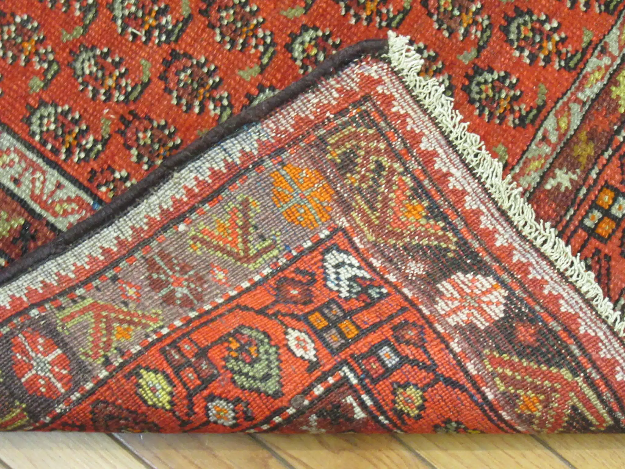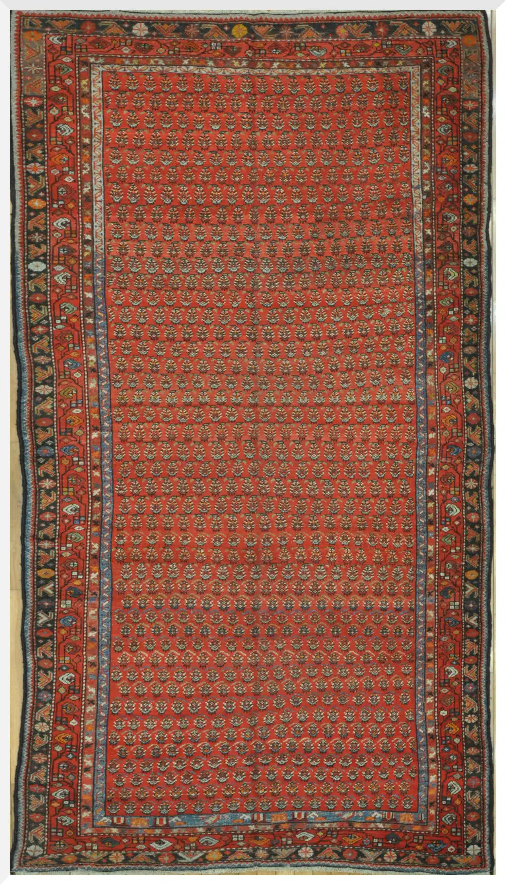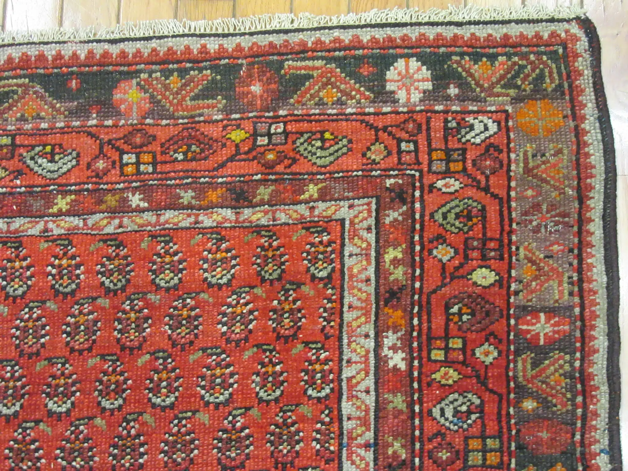This antique Persian Malayer rug presents a beautifully balanced all-over Herati pattern, a design traditionally associated with village weaving from western Iran. The field is densely filled with small-scale floral and rosette motifs, creating a rhythmic and harmonious surface that feels both detailed and refined.