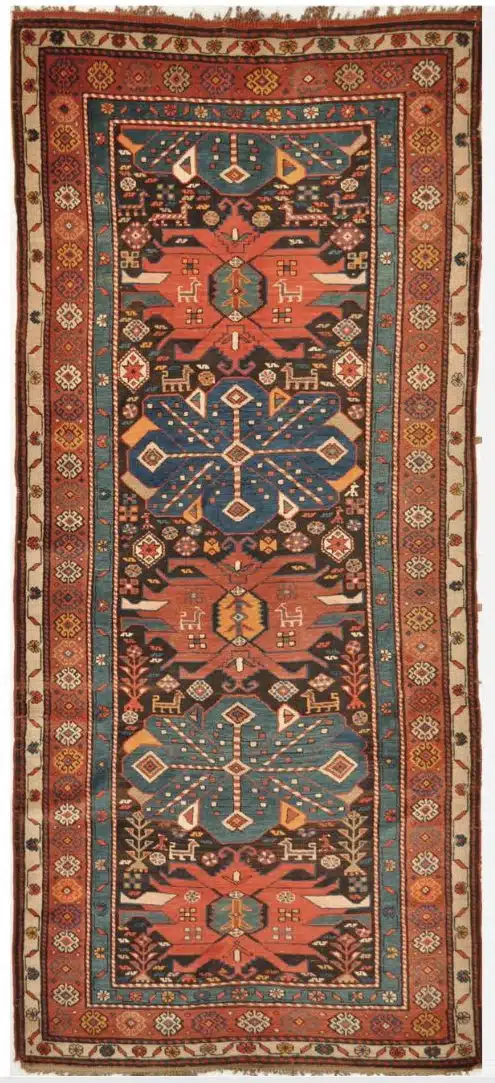 This authentic Caucasian Kazak runner was woven in the historic village of Kazak, a region known for producing some of the most recognizable and collectible tribal rugs in the world. Kazak rugs are admired for their bold medallions, high-contrast designs, and symbolic motifs rooted deeply in village life and tradition.