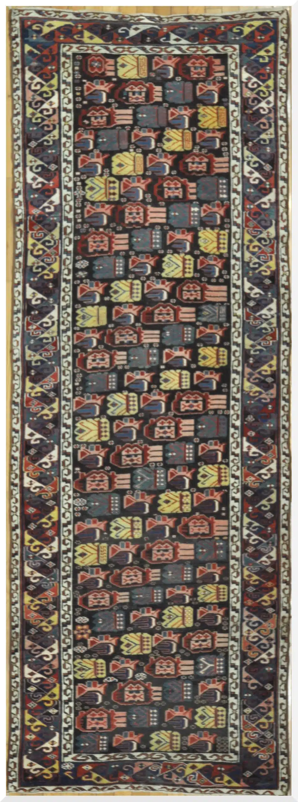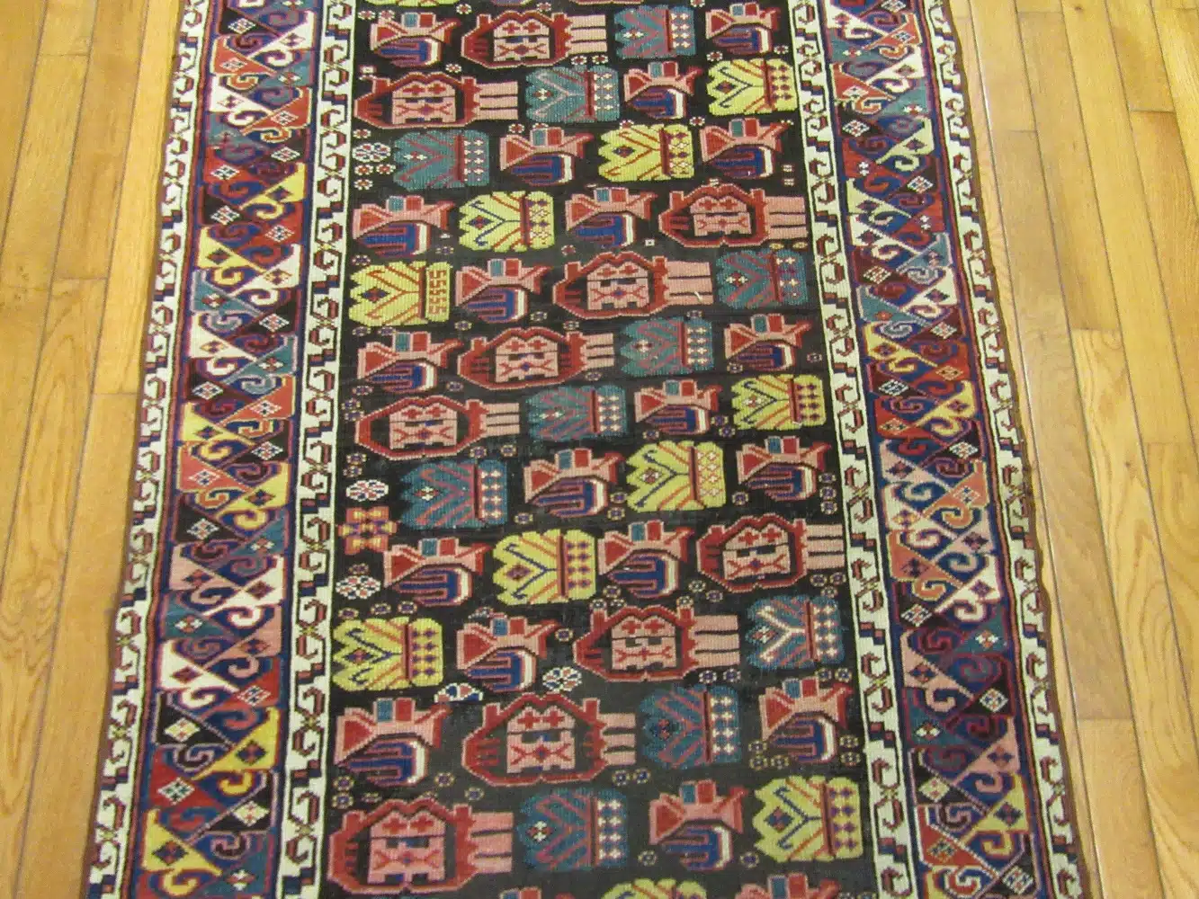 Ideal for hallways, entryways, or narrow living spaces, this runner brings authentic Caucasian character and timeless tribal elegance. Its elongated form and bold pattern make it a striking yet versatile addition to traditional and eclectic interiors alike.