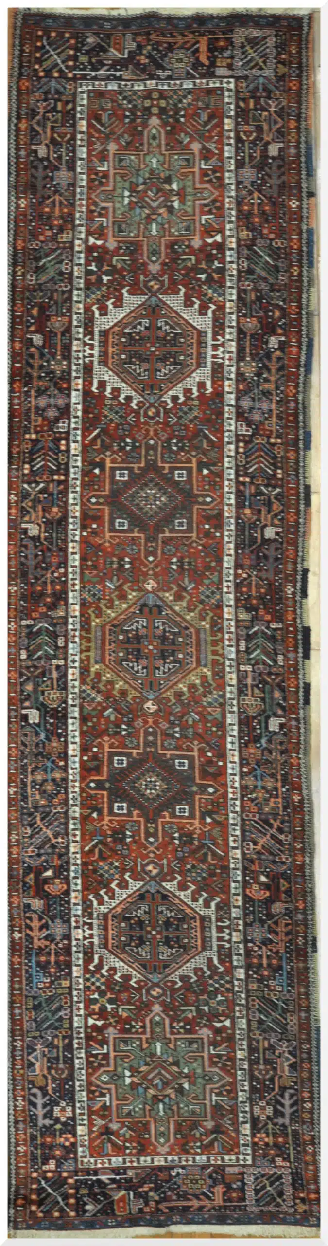 With its long and narrow proportions, this rug is ideal for hallways, entry corridors, or gallery-style spaces. Its striking tribal design and historic craftsmanship make it a compelling accent piece for interiors that appreciate bold patterns, heritage, and timeless character.