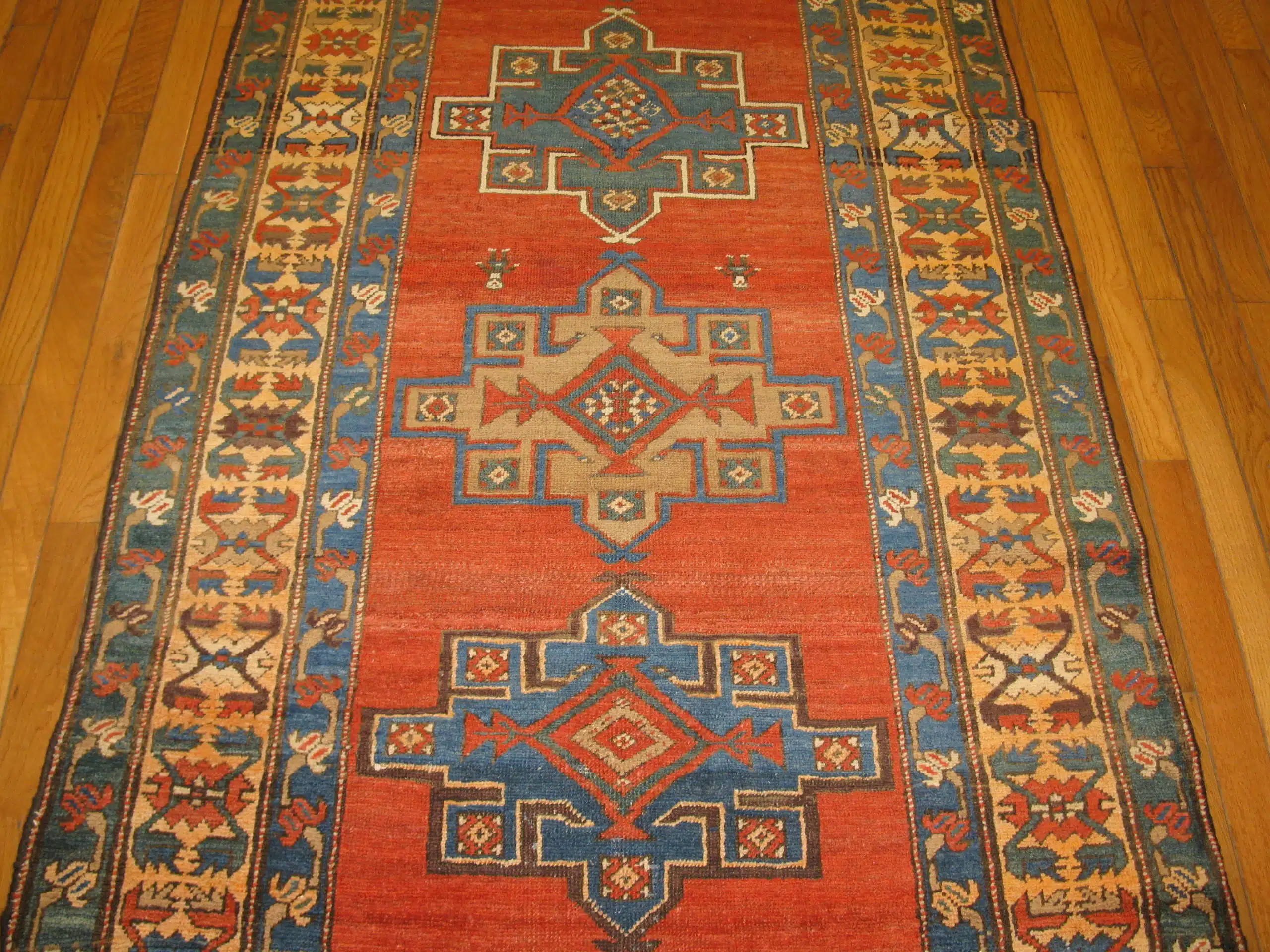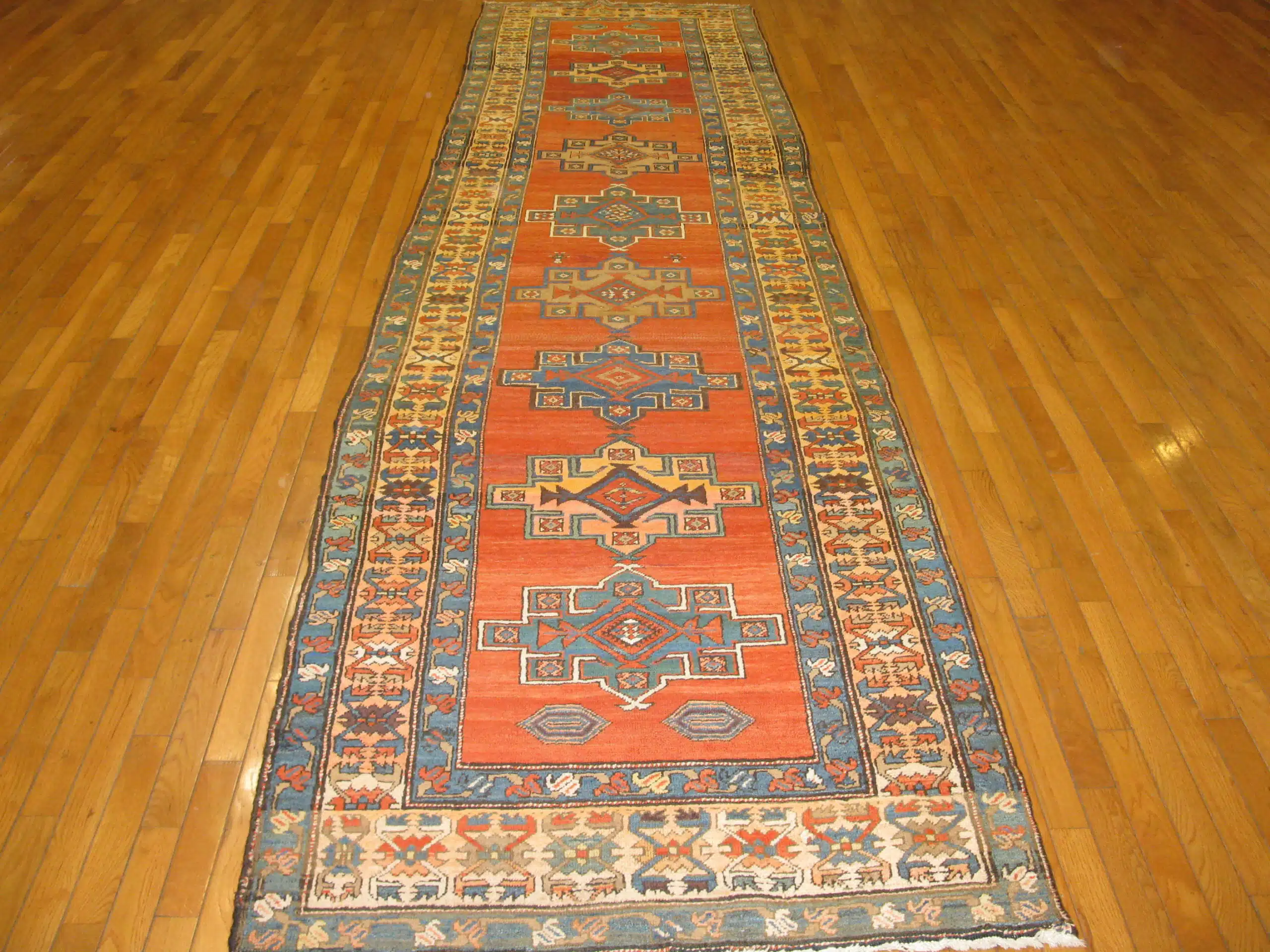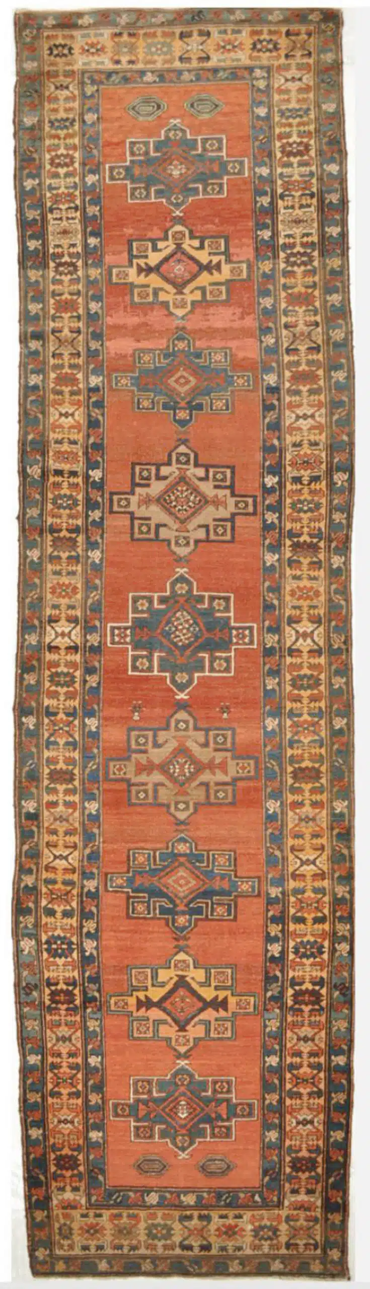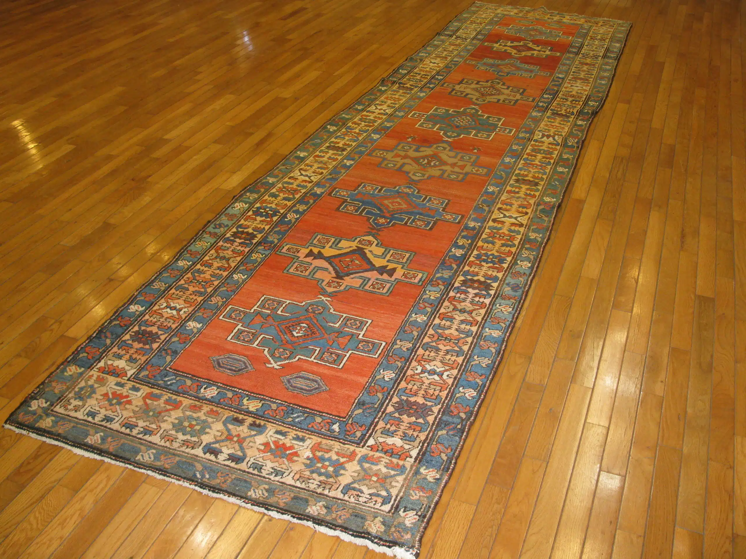 Perfect for long hallways, wide corridors, or beside a kitchen island, this runner adds bold traditional character and warmth to narrow spaces. Its tribal design works well with rustic, farmhouse, or eclectic interiors, while the deep red field provides a rich foundation that pairs nicely with wooden floors or neutral walls. The antique quality and rare size make it a special, collectible piece with authentic patina.