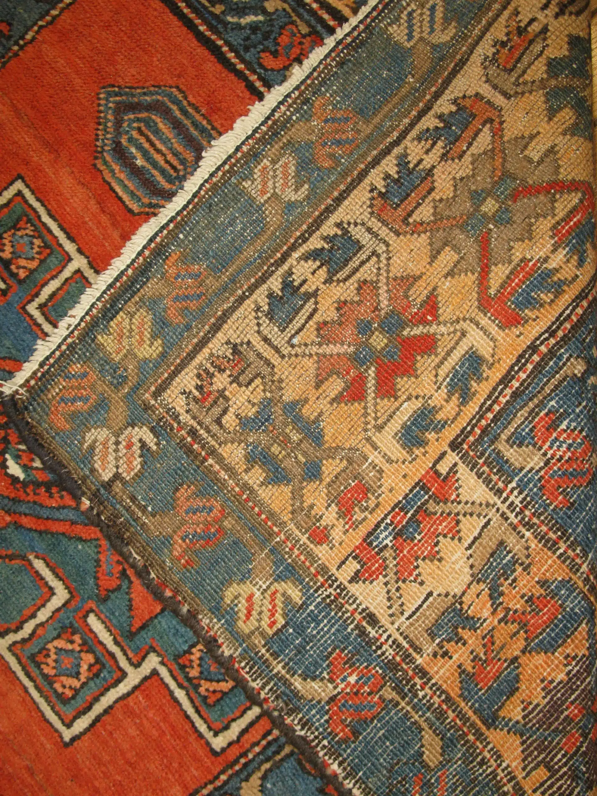 Bakhashayesh rugs, produced in the Heriz region of northwest Persia during the late 19th century, are known for their robust tribal patterns and vivid yet earthy color palettes achieved with natural dyes. The simple, large-scale geometric style with prominent medallions and strong borders is a signature of these weavings, often made for local use and export. This example’s good condition for its age reflects the tight hand-knotting and durable wool that has held up well over time.