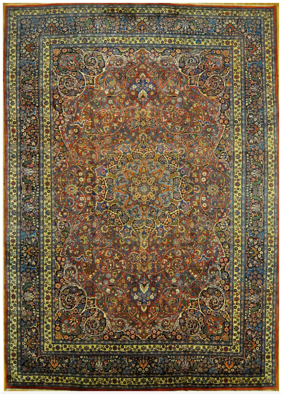 Khorasan rugs come from the vast northeastern region of Persia (now Iran), where weavers in cities like Mashhad and surrounding villages produced some of the most finely knotted and elaborately designed carpets during the Qajar period. These rugs are known for their dense floral patterns, rich color combinations, and exceptional detail, often drawing from classical Persian garden motifs. This large antique example showcases the region’s mastery of complex curvilinear designs and vegetable-dyed wool.