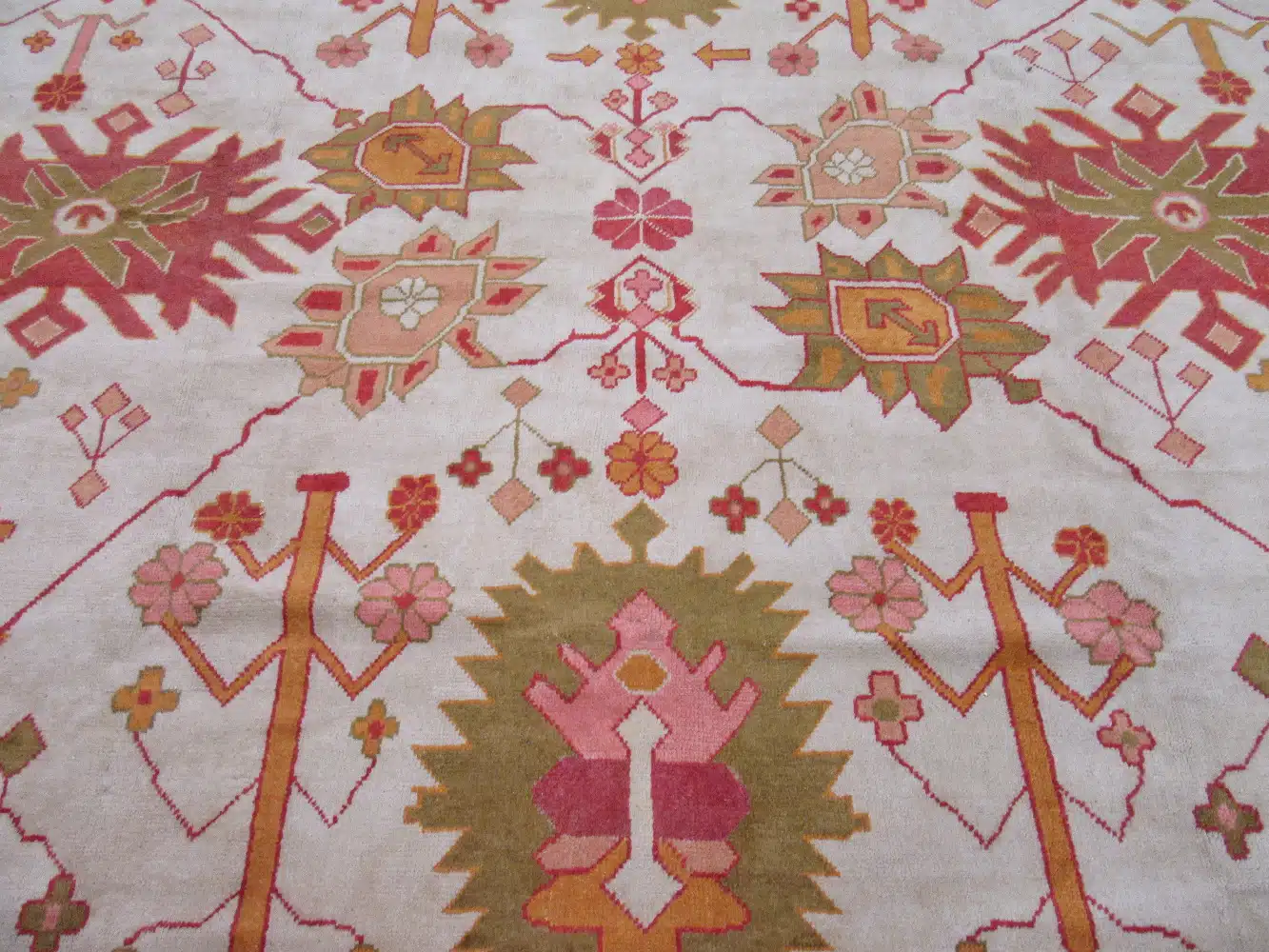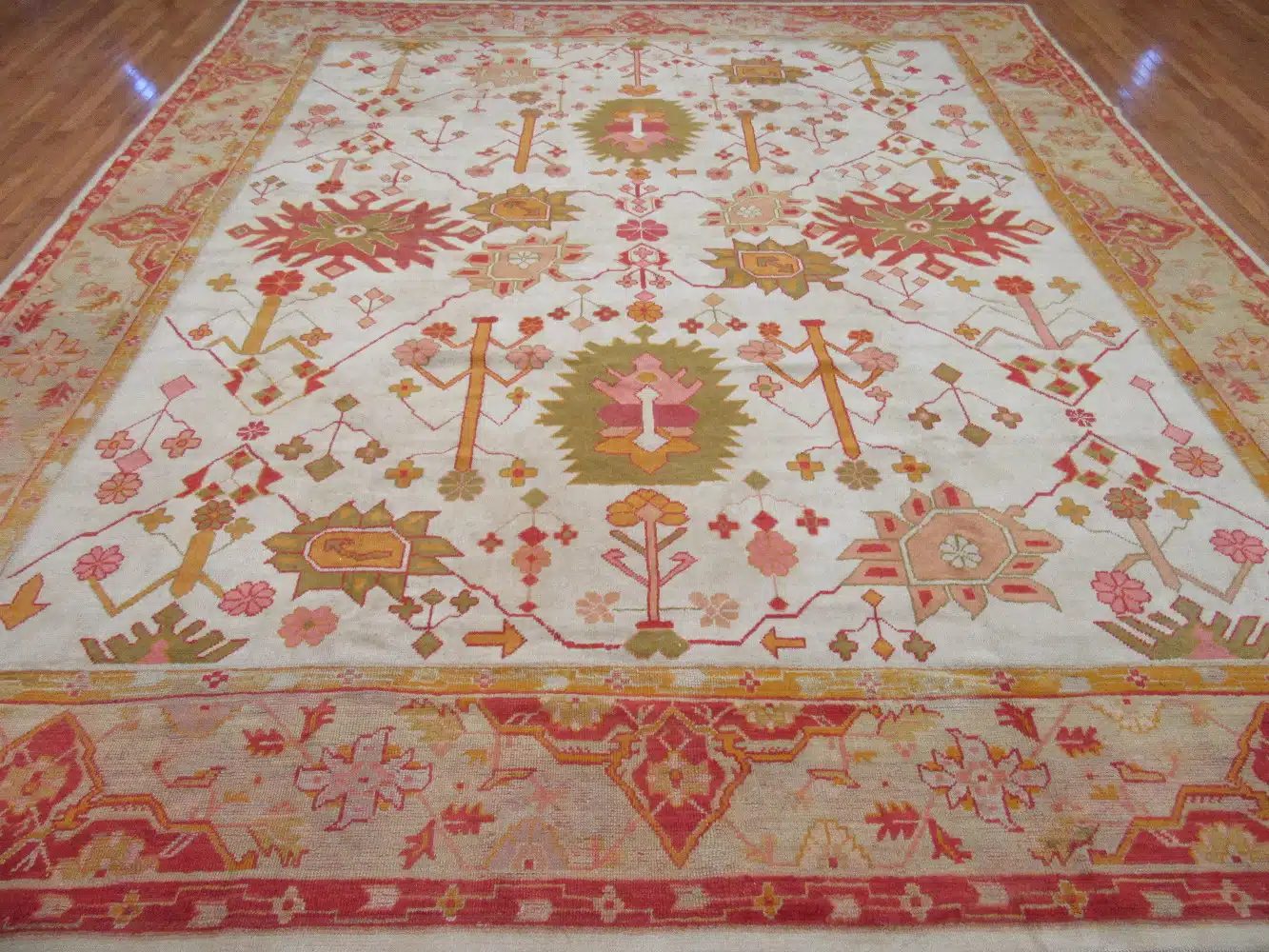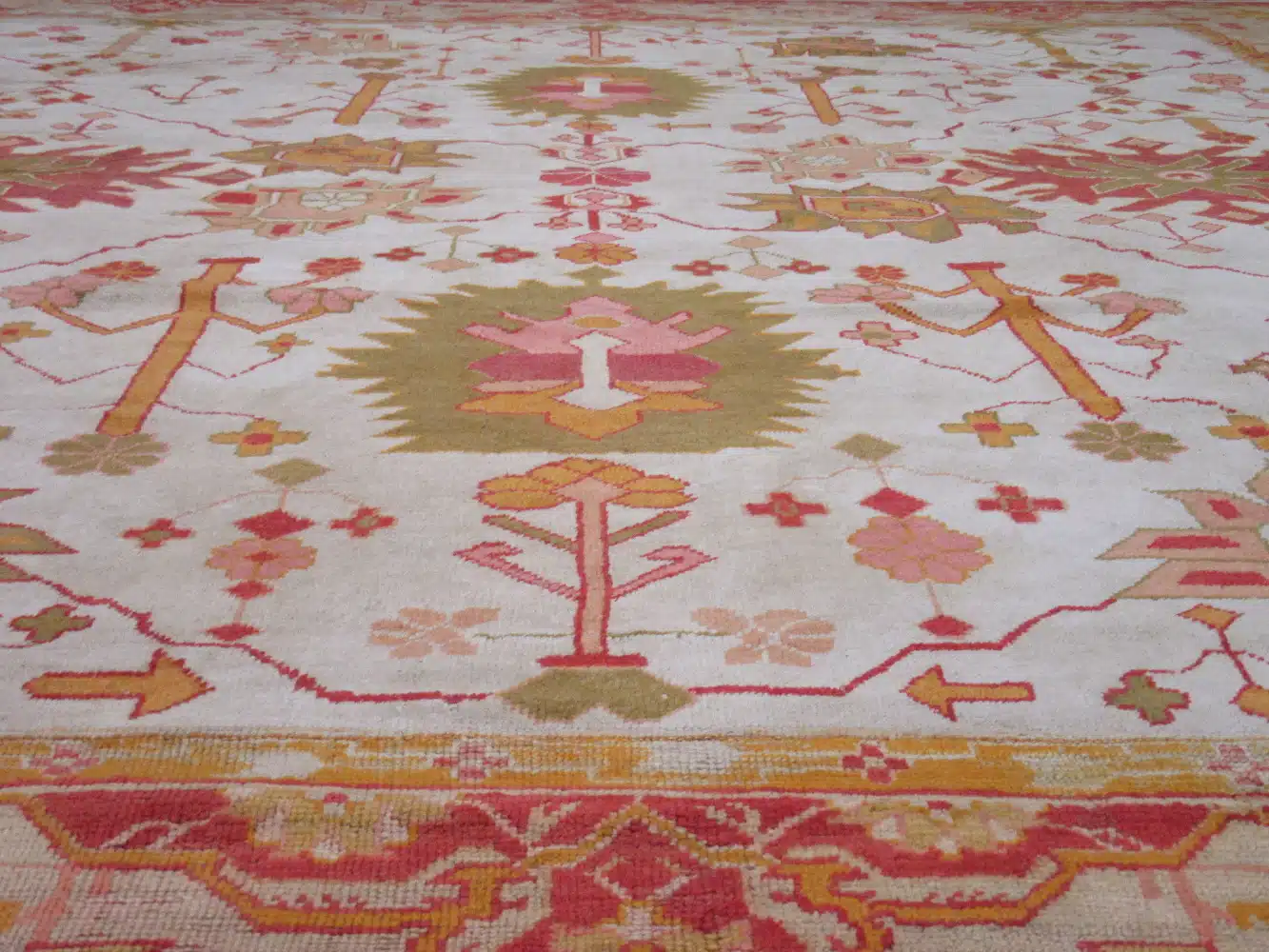 The thick wool construction provides excellent durability and a comfortable feel, suitable for large living rooms, dining areas, or great rooms with moderate traffic. Its generous size and gentle palette create a serene focal point, while the traditional motifs add historical depth. Regular vacuuming and professional cleaning every few years will preserve the soft colors and maintain the pile’s integrity.