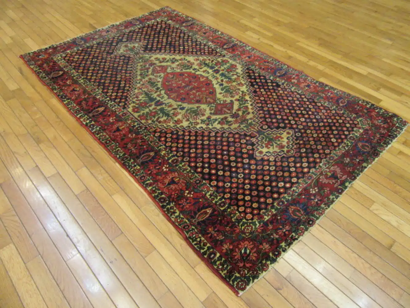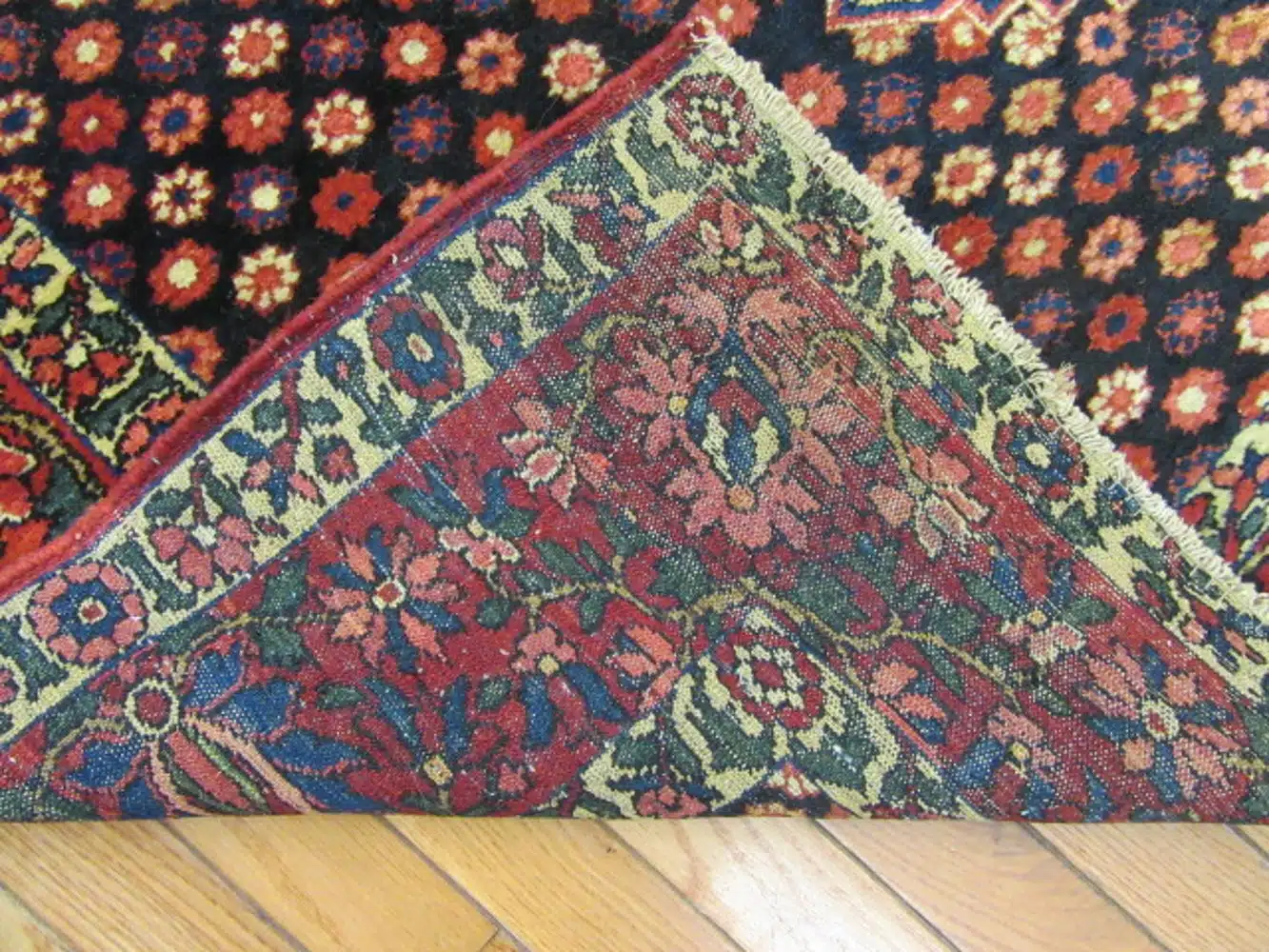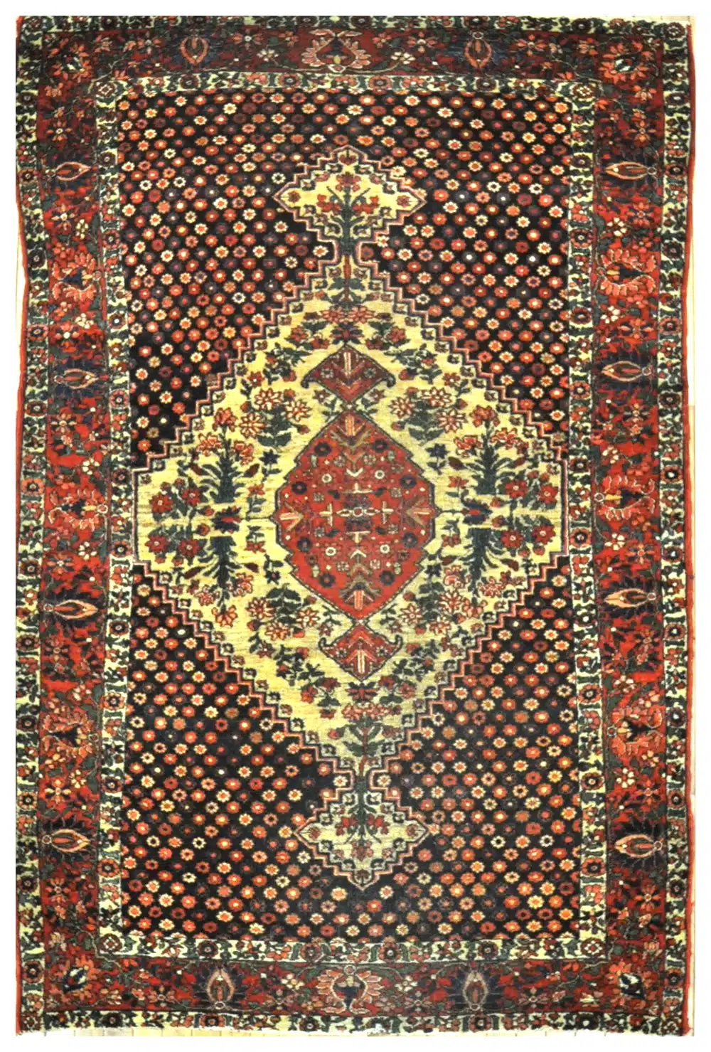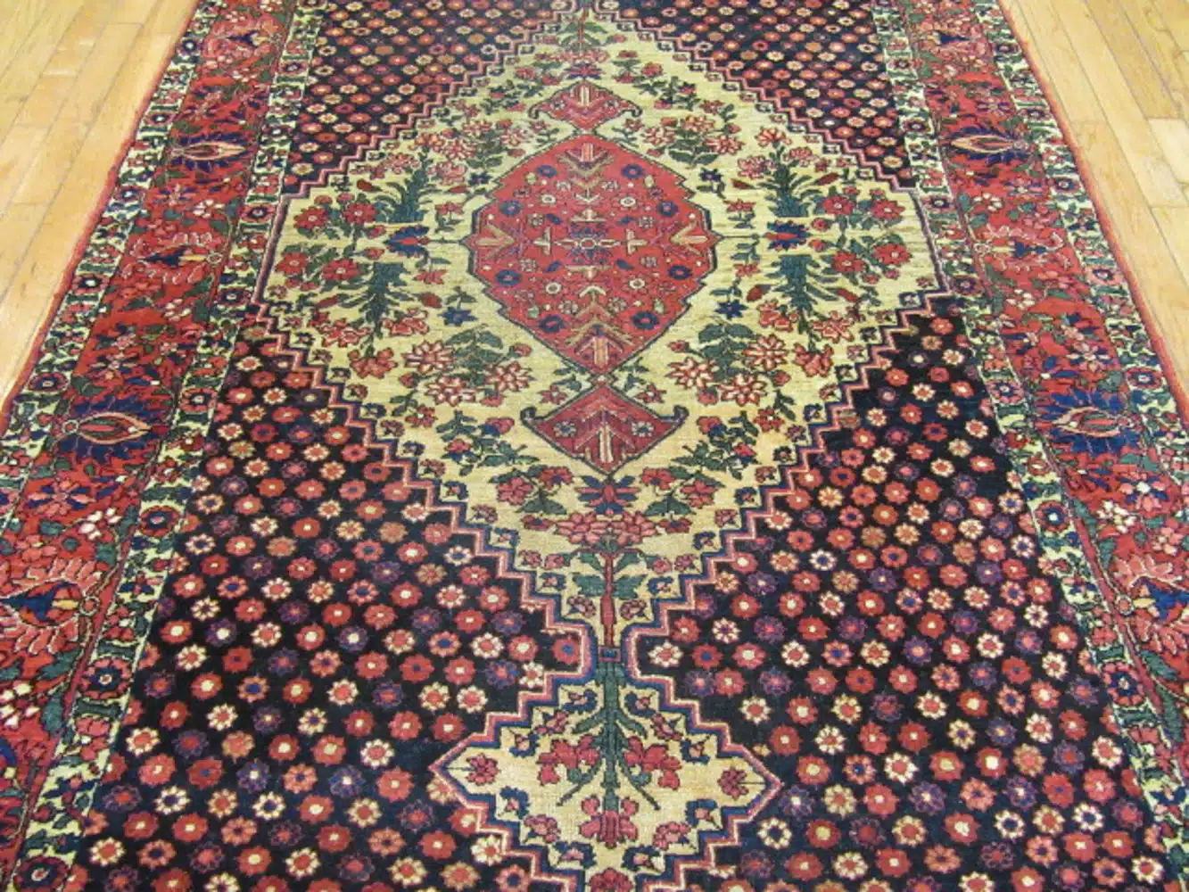Bakhtiar rugs, woven by semi-nomadic tribes in the Zagros mountains during the late 19th and early 20th centuries, are known for their sturdy construction and intricate patterns that blend village and nomadic influences. These pieces use thick wool and natural dyes for deep, lasting colors that soften gracefully over time. This example’s detailed medallion and fine knotting reflect the high quality often found in Bakhtiar weavings from this period.