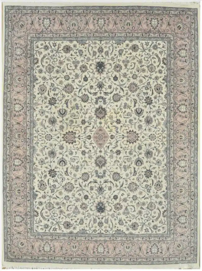 Kashan designs are celebrated for their intricate floral layouts and fine knotting, traditionally from central Persia but skillfully reproduced here in Pakistan. The subdued palette offers elegance without boldness, making placement flexible.