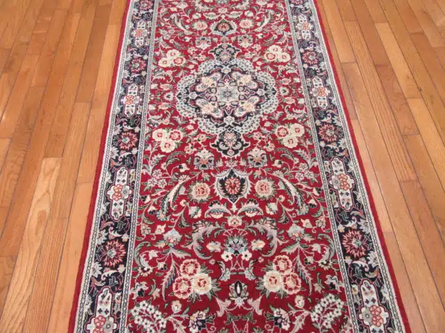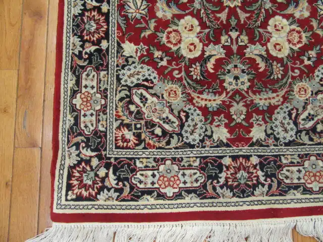 With its warm red tones and timeless style, this rug works well in living rooms, dining areas, or bedrooms. It adds elegance to traditional decor and pairs nicely with wood furniture or neutral walls. The wool material is durable, easy to clean, and naturally resists stains.