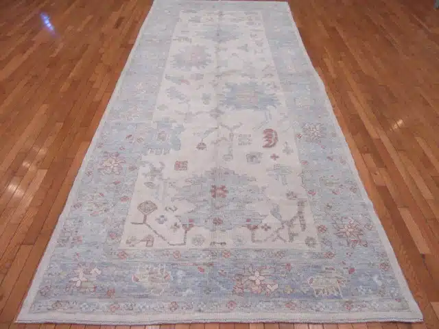 Oushak rugs originate from the Uşak region in western Turkey, celebrated since the Ottoman era for their large-scale patterns, open spacing, and soft natural palettes. This contemporary runner faithfully recreates the classic style using fine hand-knotted wool and careful dyeing techniques, achieving the desired gentle, timeworn look with modern durability and consistency.