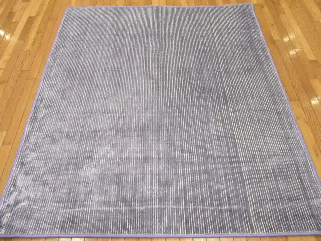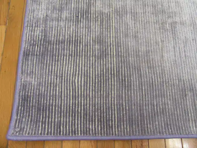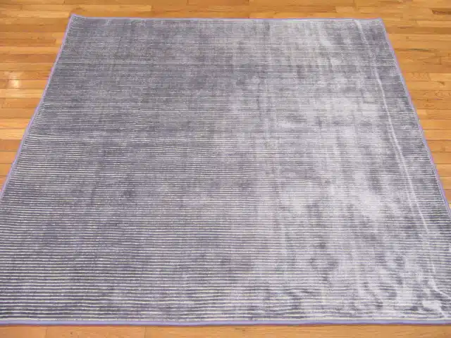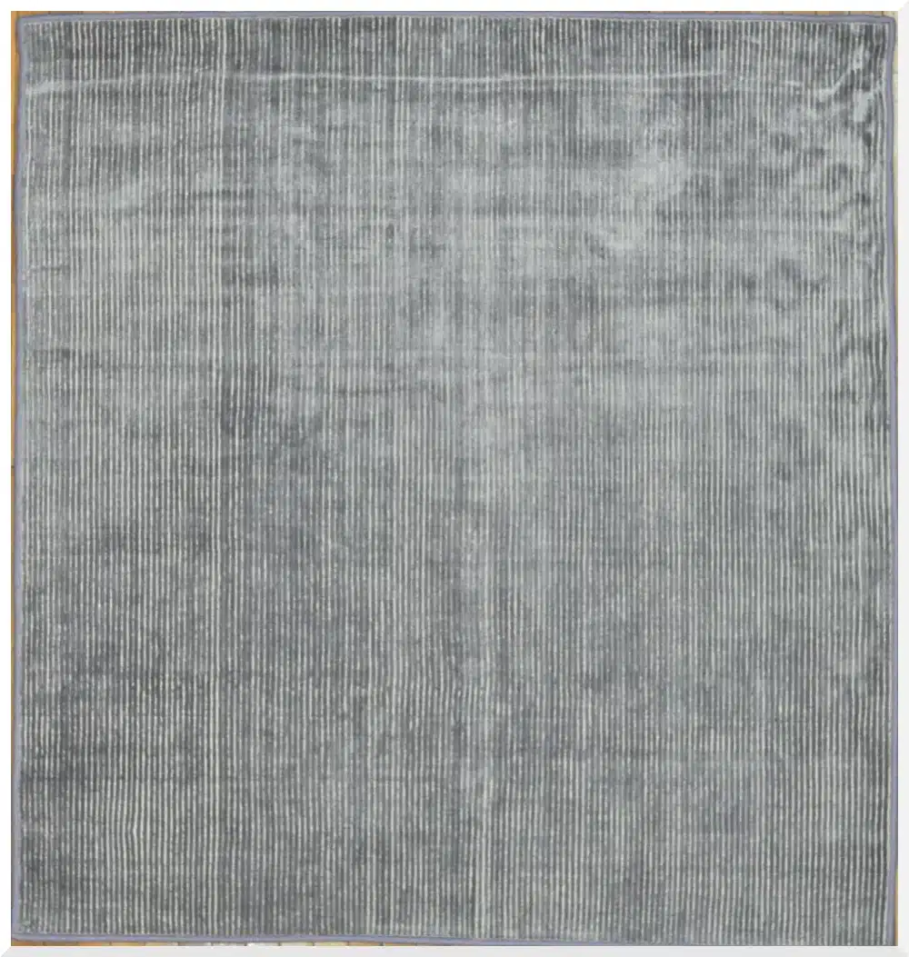 This handmade Indian rug features a simple modern design with fine vertical stripes created through varying pile heights, giving it a textured, ribbed appearance in solid gray tones. The lack of bold patterns or borders keeps the look clean and minimalist, ideal for layering or standalone use.