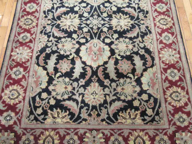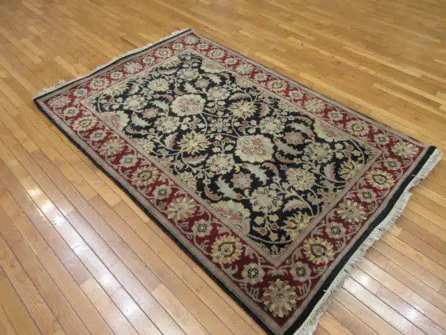 4′ x 6′ Indian Tabriz Design Black Ivory Oriental Rug Traditional Wool