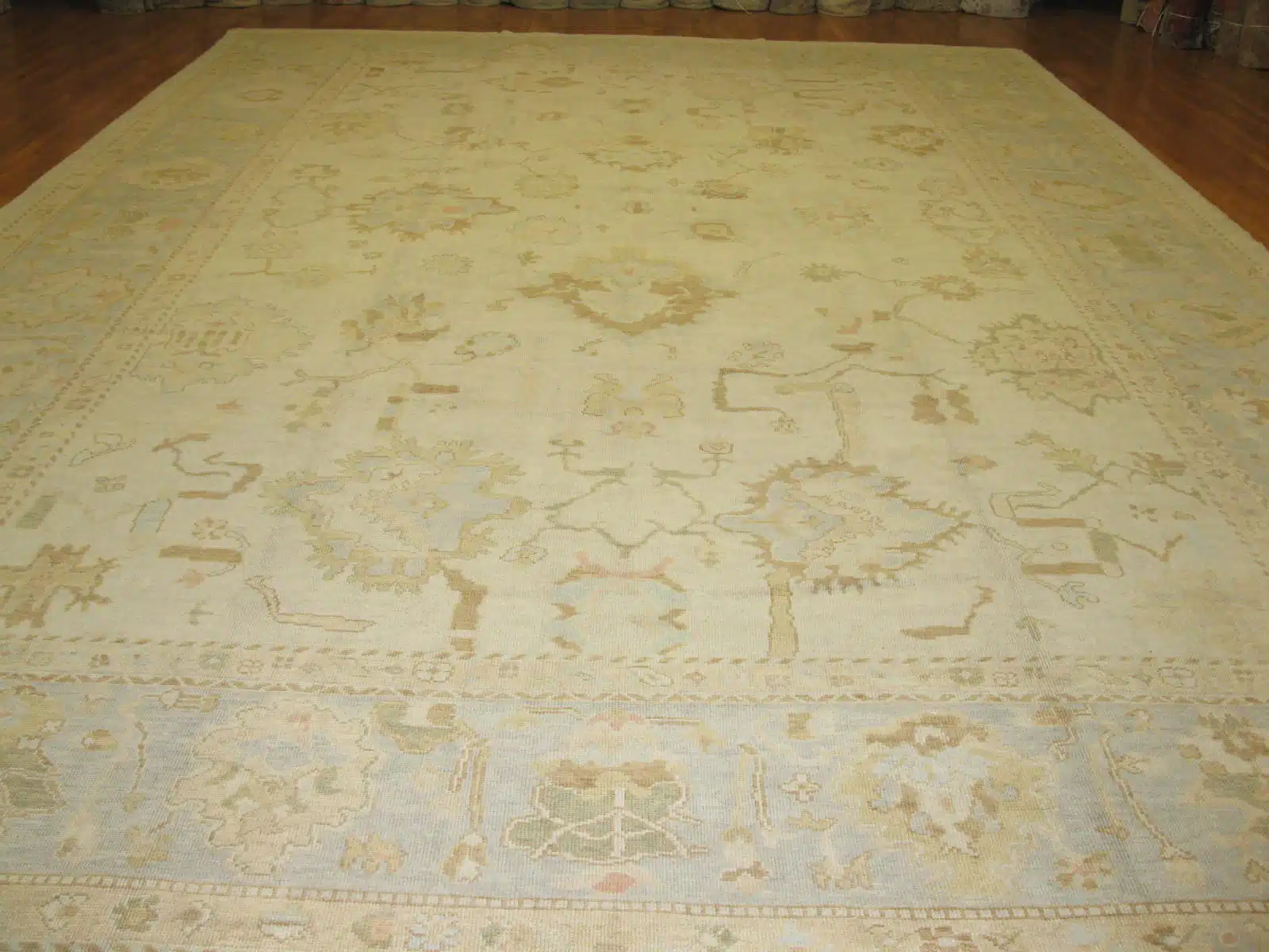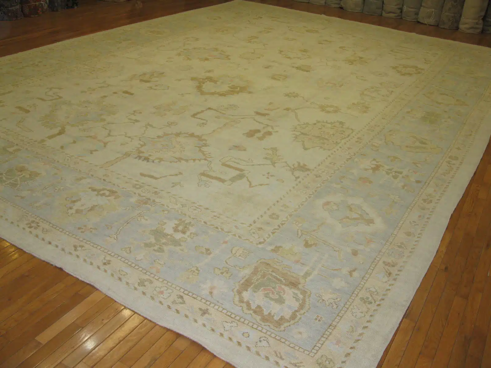 This oversized rug excels in durability due to its firm hand-knotted construction and natural wool material, which resists wear and feels soft underfoot. It suits grand living rooms, dining areas, or open-plan spaces where it can anchor furniture without overwhelming the room. Regular vacuuming and occasional professional cleaning will keep its subtle colors fresh and maintain the pile’s integrity for many years.