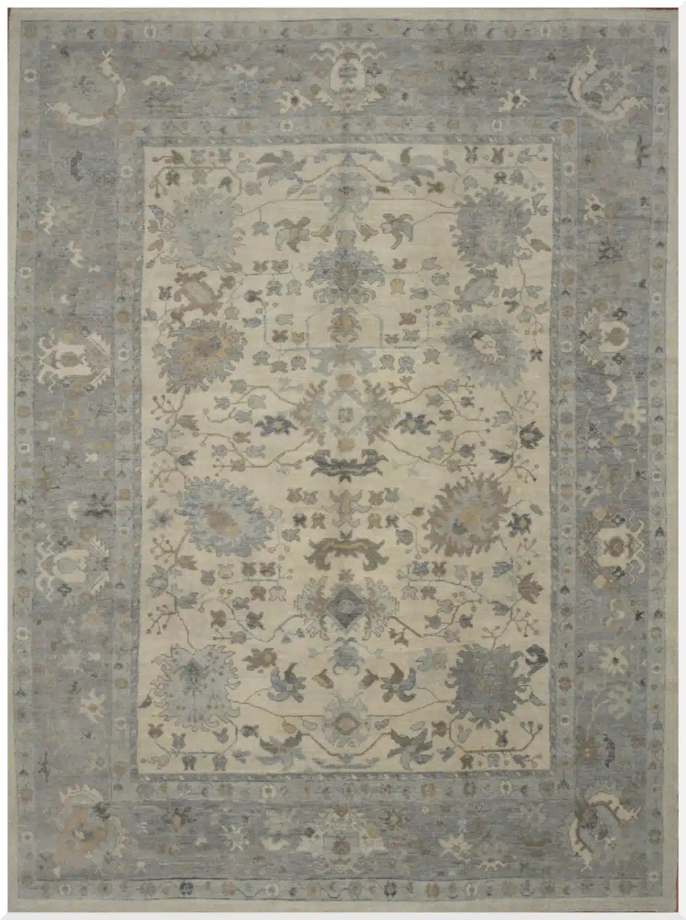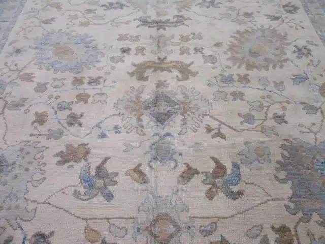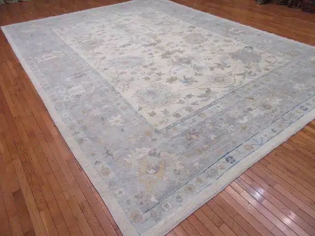 Oushak rugs from western Turkey have been prized since the Ottoman period for their large-scale patterns, spacious layouts, and soft natural palettes. This contemporary piece faithfully recreates the classic style using fine hand-knotted wool and careful dyeing techniques, achieving the desired gentle, aged aesthetic with excellent craftsmanship and durability, making it perfect for spacious modern or traditional interiors.