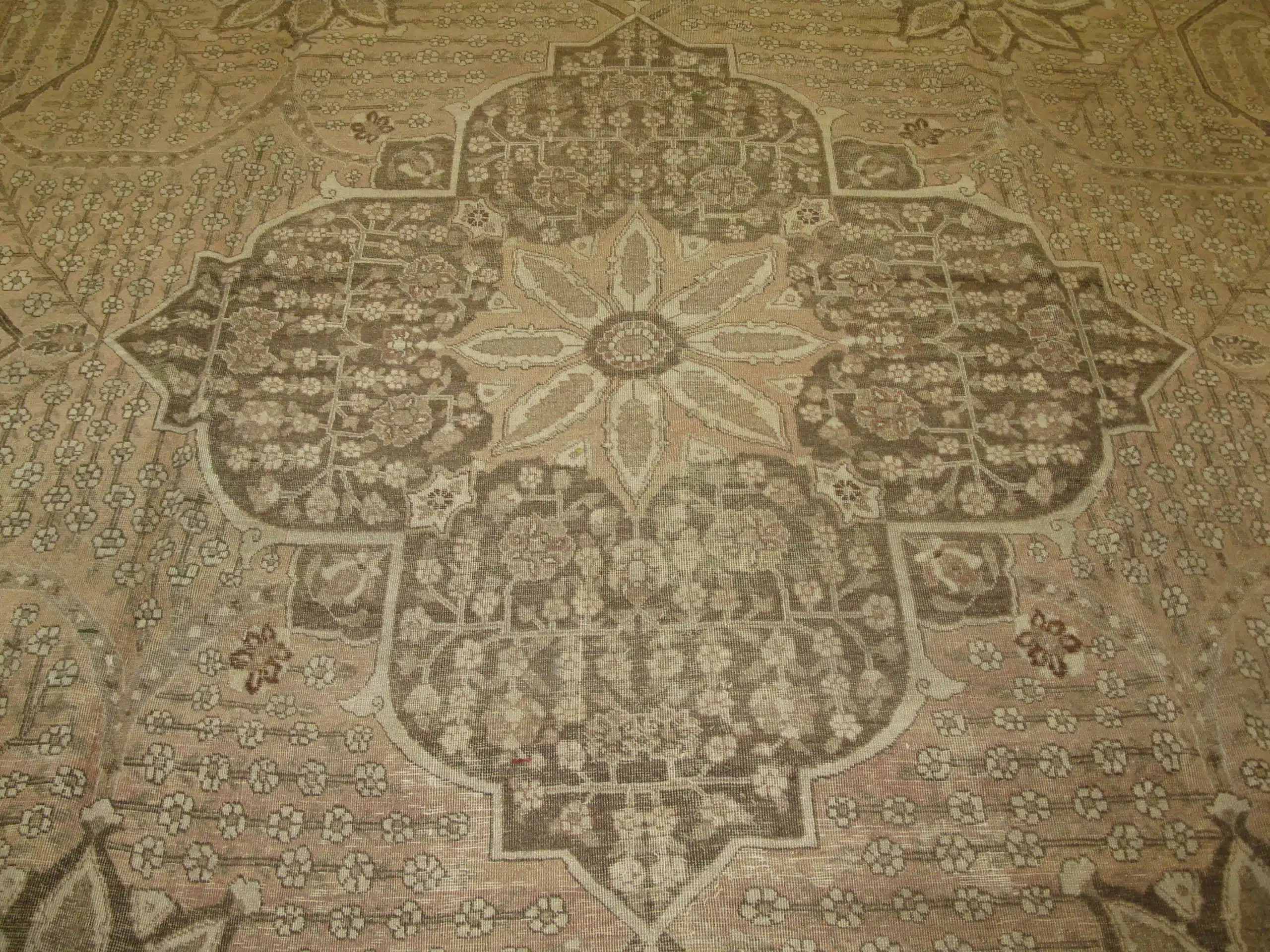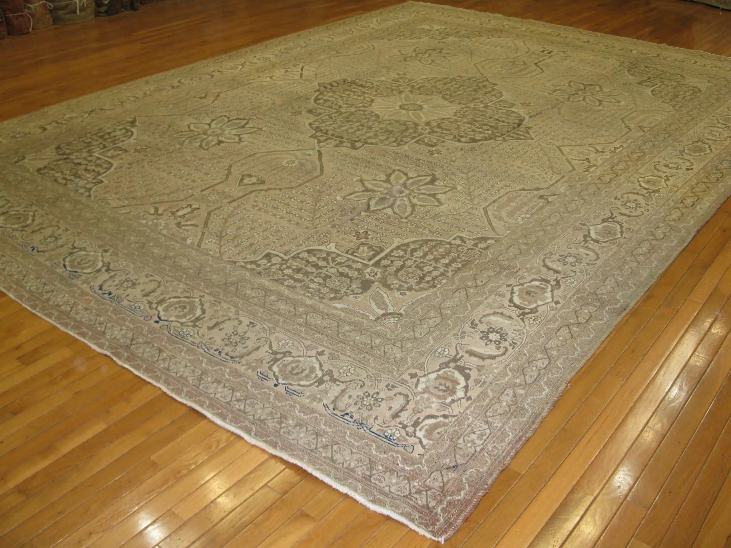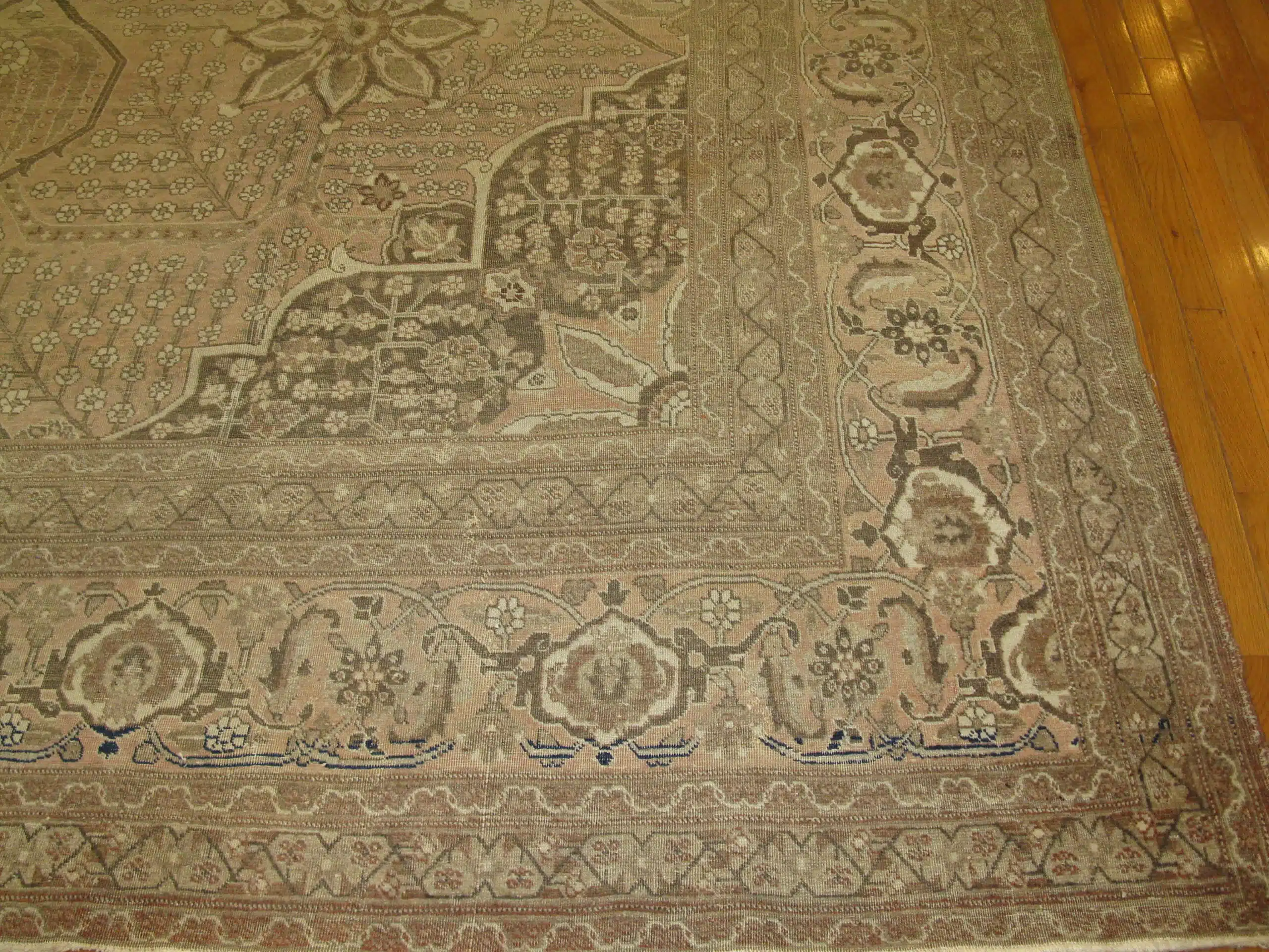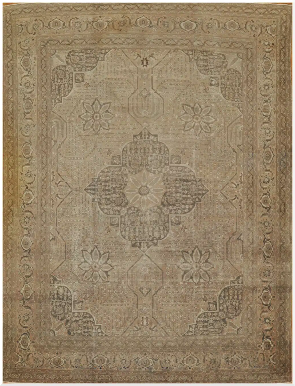 With its generous room-size proportions and timeless design, this antique Tabriz rug is ideal for formal living rooms, dining areas, or refined gathering spaces. Its quiet elegance, historical significance, and craftsmanship make it a distinguished piece for collectors and interiors that value heritage and enduring beauty.