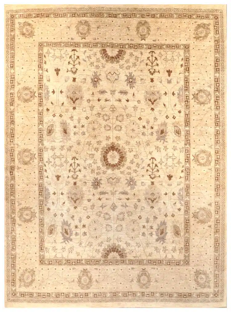Pakistan has become a major center for hand-knotted Oriental rugs, with skilled weavers producing pieces inspired by Persian and Turkish traditions. Many designs draw from classic motifs like medallions, vines, and flowers, but often with brighter or softer palettes to appeal to contemporary tastes. This example uses high knot density and natural wool to achieve a refined finish typical of quality Pakistani craftsmanship.