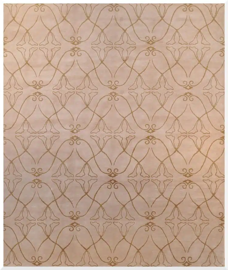 Color Palette: Warm beige or soft camel field with elegant golden-brown repeating lattice and floral motifs