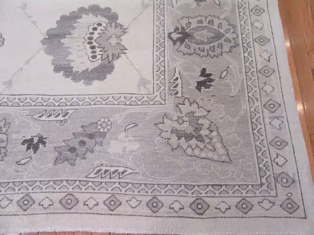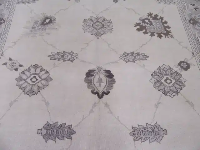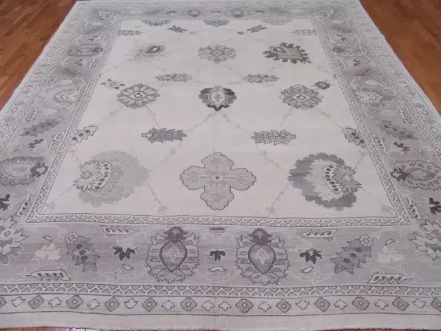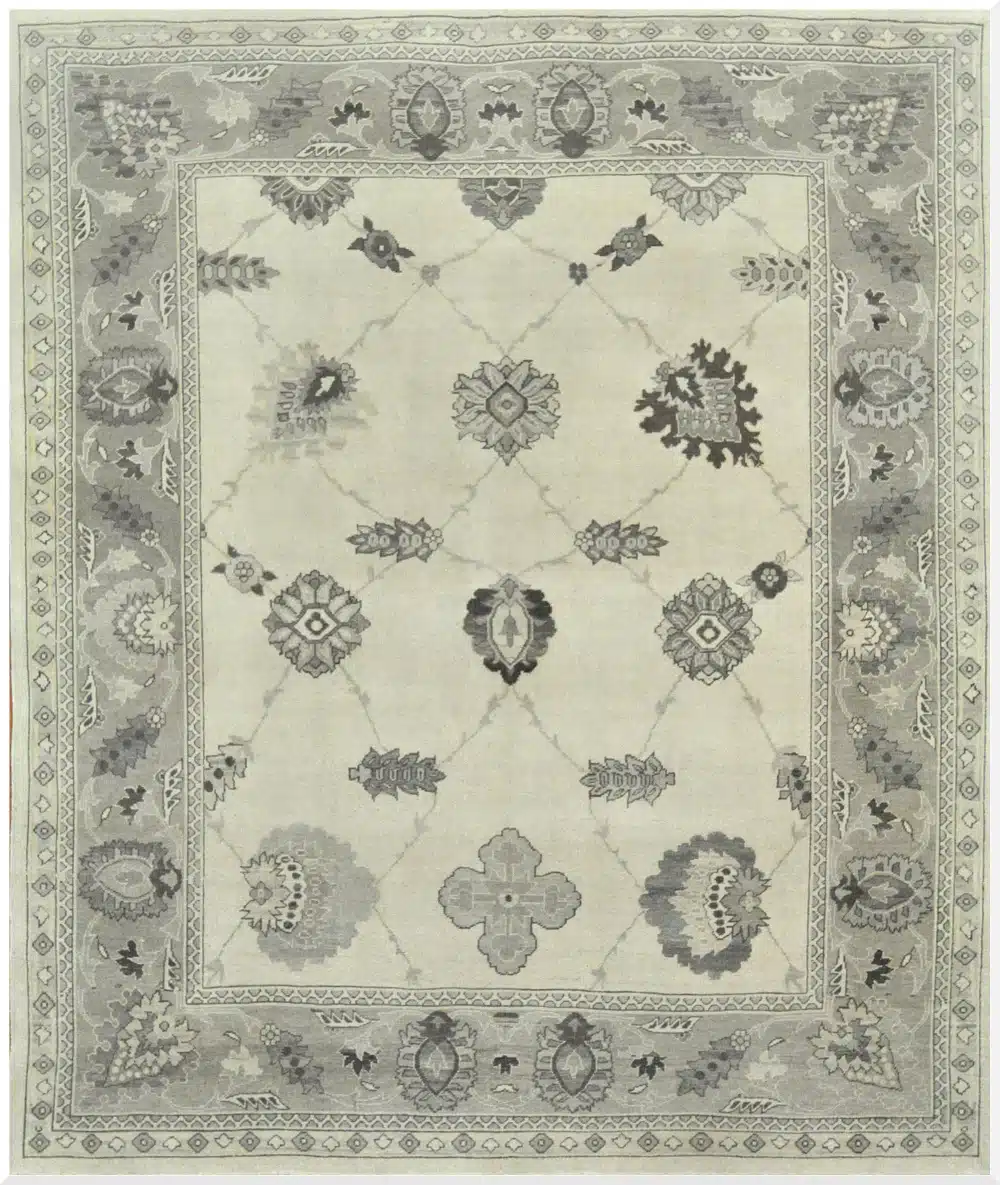 Oushak rugs originate from western Turkey, known for their spacious layouts and soft palettes. This Egyptian reproduction captures the classic style using high-quality hand-knotting and wool, offering the timeless elegance of traditional pieces with modern consistency and durability.