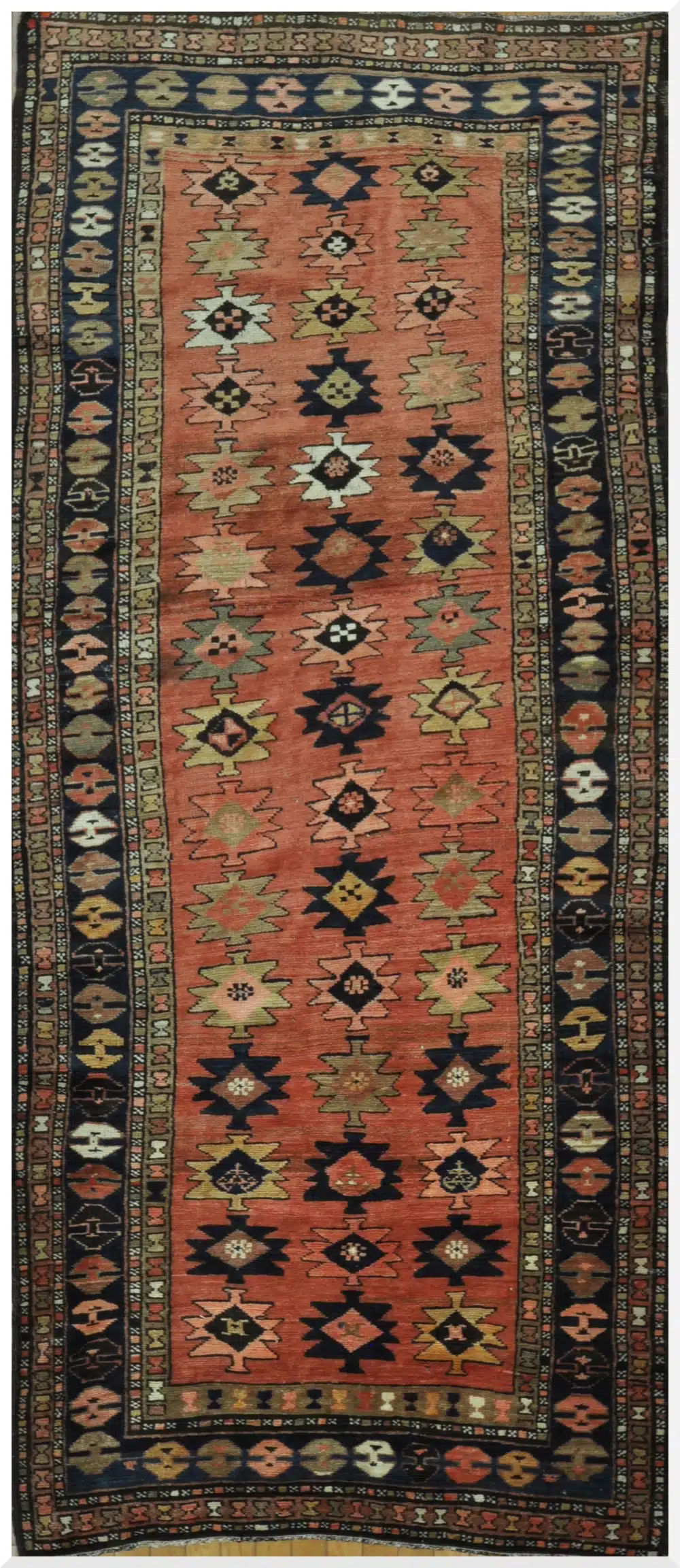 4′ x 8′ Tribal Handmade Rug – Traditional Geometric Caucasian Kazak, Rust & Navy