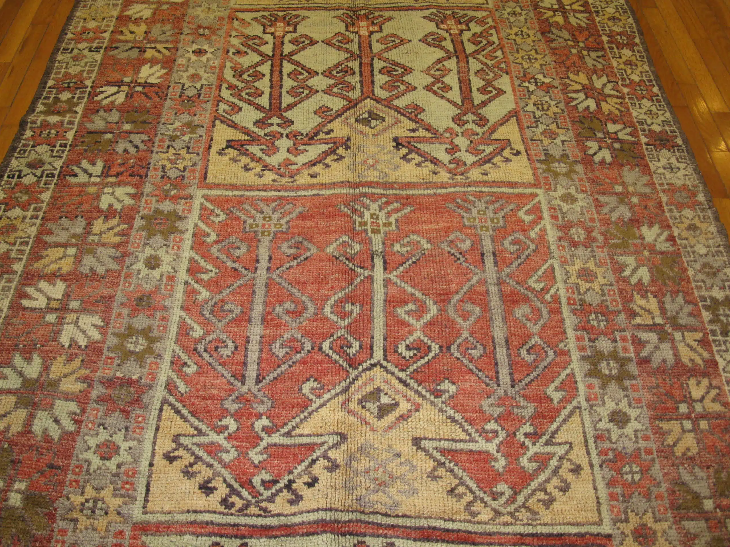 Hand-knotted entirely from wool and dating to the mid-20th century, this piece reflects skilled Anatolian craftsmanship and thoughtful design. Preserved in great condition, it offers both durability and character, rewarding closer inspection with layered detail and subtle color variation.