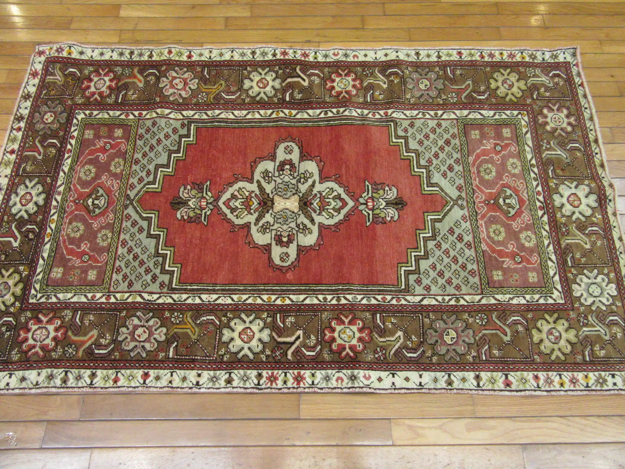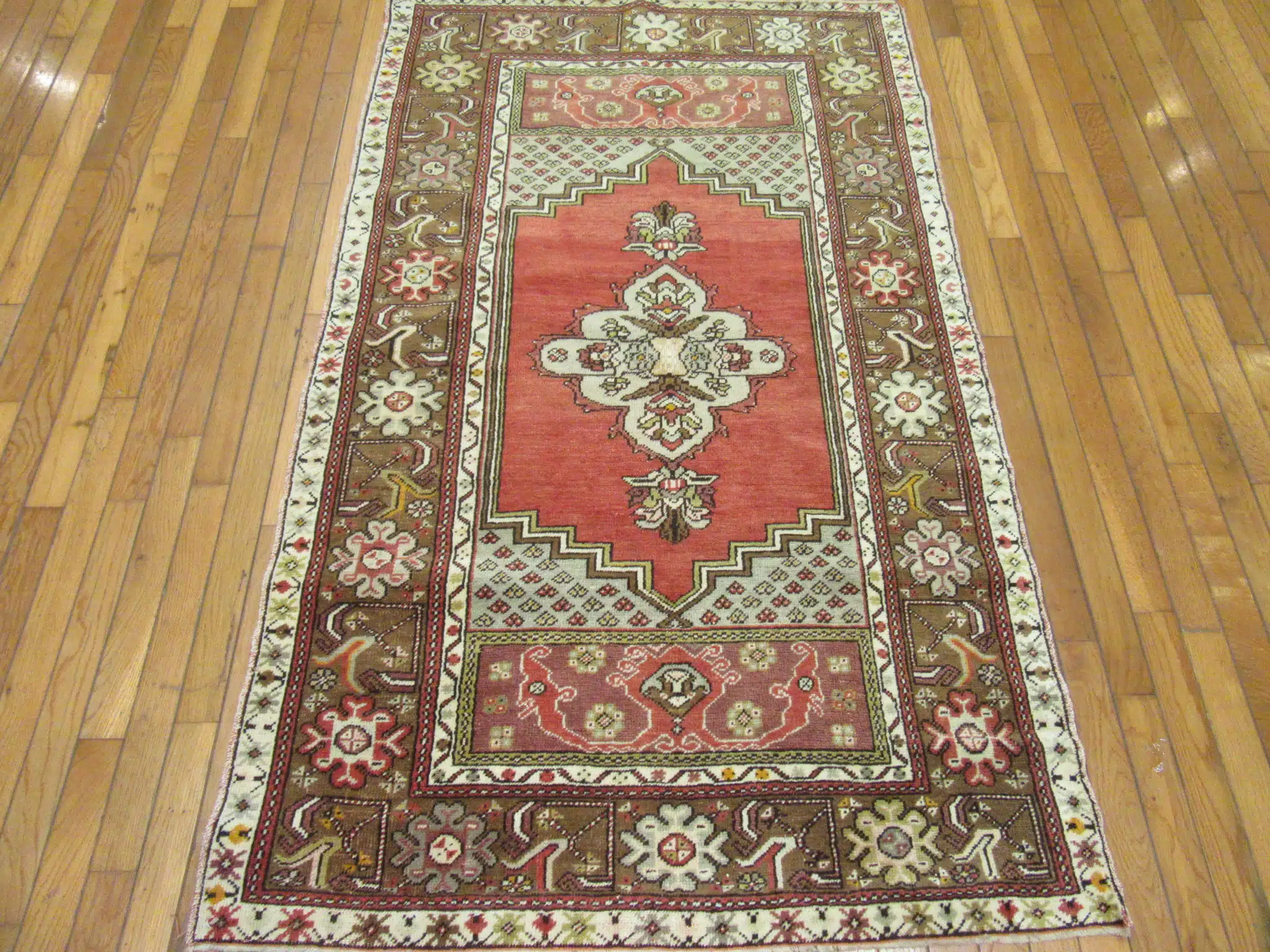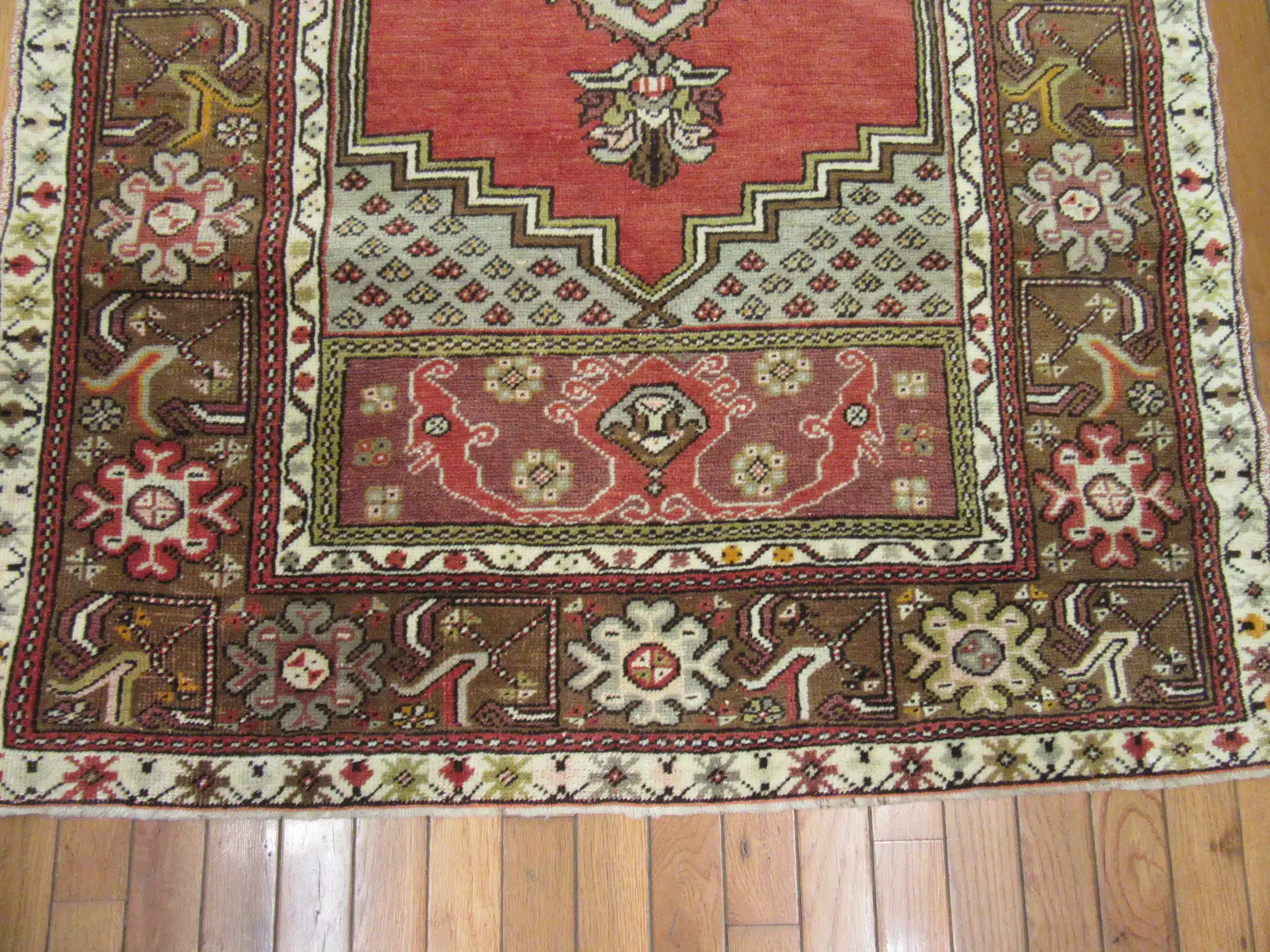 This vintage hand-knotted Turkish Anatolian rug displays a balanced central medallion framed by richly detailed borders, reflecting traditional Anatolian design with a versatile, transitional appeal. The warm rust-red field is complemented by ivory and soft beige accents, creating depth without overwhelming the space.