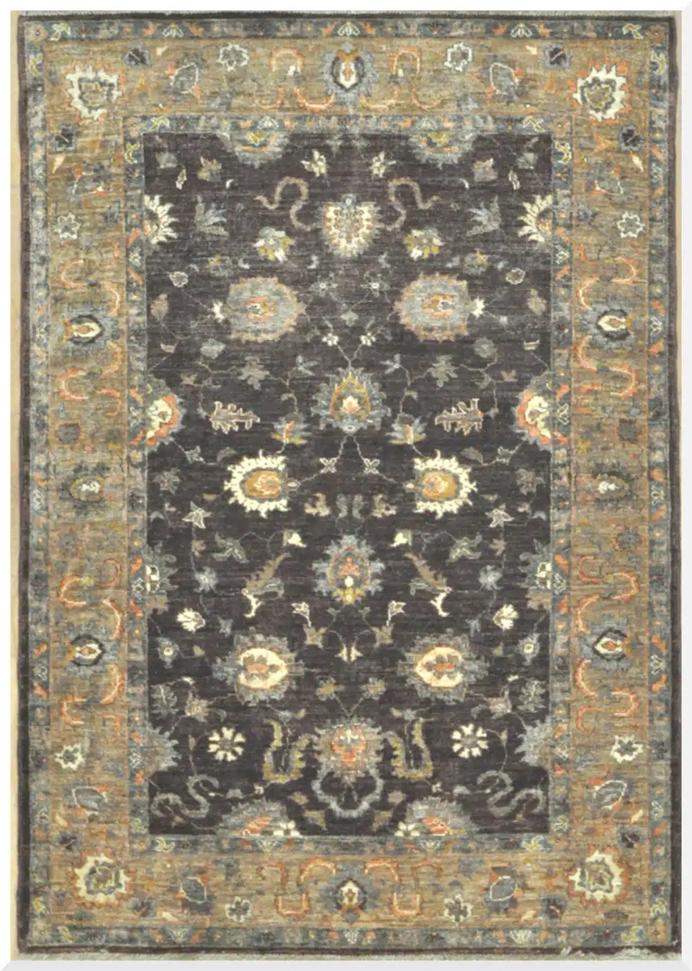 This hand-knotted area rug features a rich charcoal gray field adorned with softly faded floral and botanical motifs, creating a refined and calming visual effect. The design blends classic Persian inspiration with a transitional aesthetic, making it versatile for both traditional and modern interiors.