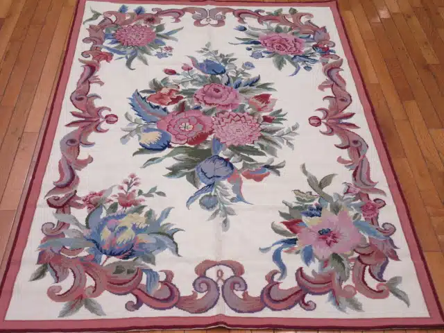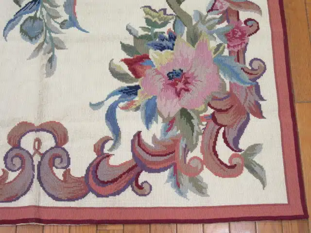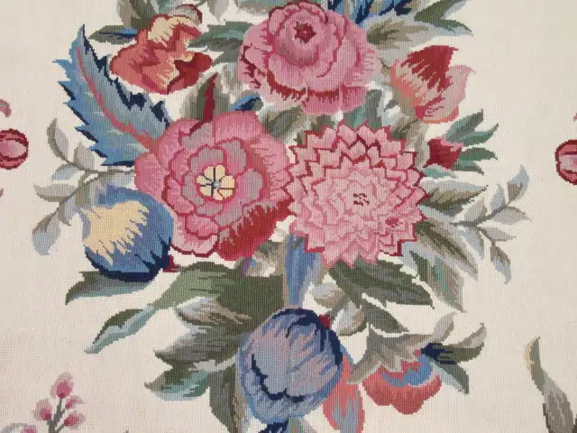 Needlepoint rugs are known for their fine, tapestry-like surface and lightweight construction, making them ideal for bedrooms, sitting rooms, reading corners, and accent spaces where charm and sophistication are desired. Despite its delicate appearance, this rug is crafted with durable wool stitching on a strong canvas foundation for longevity.