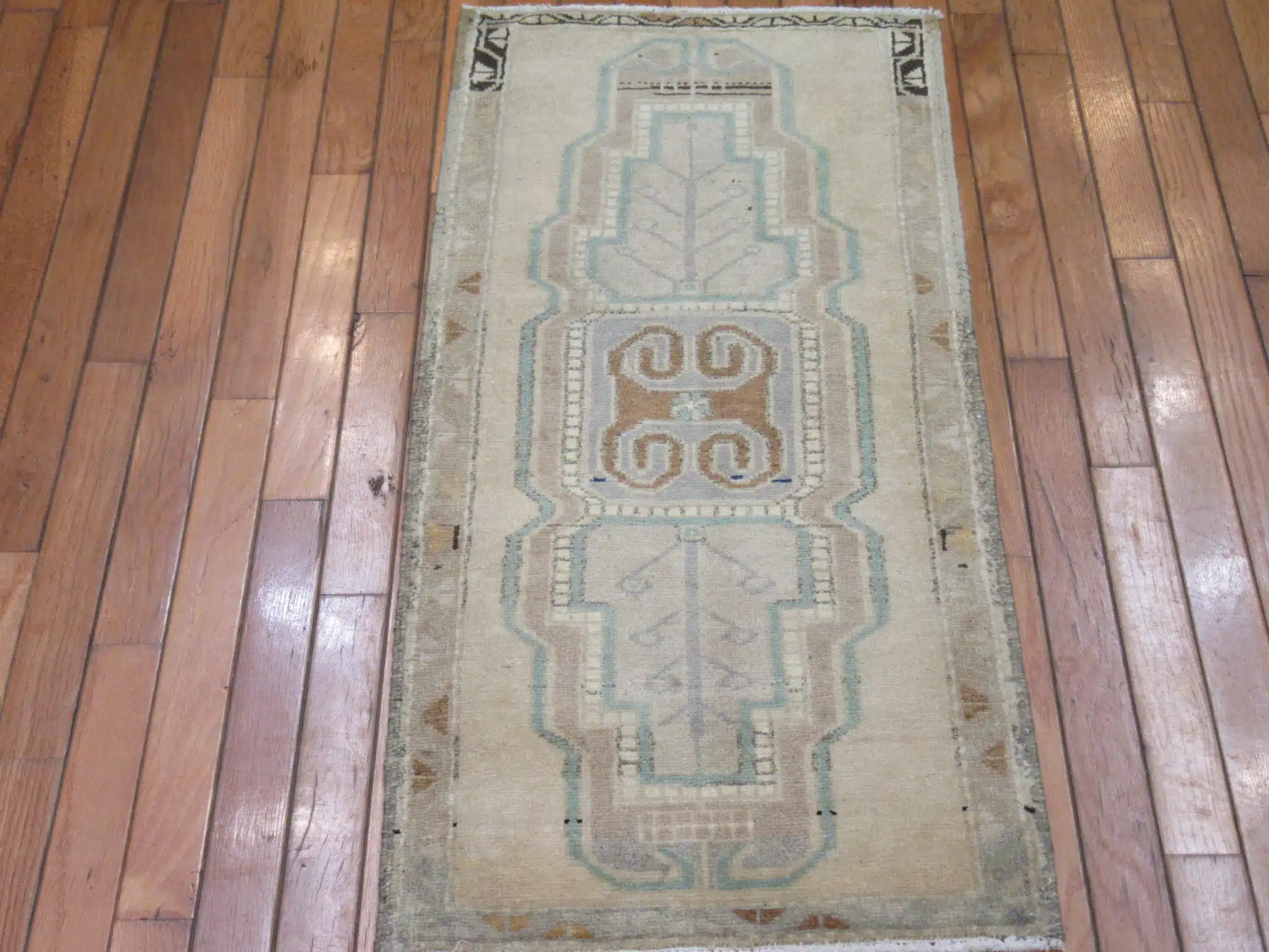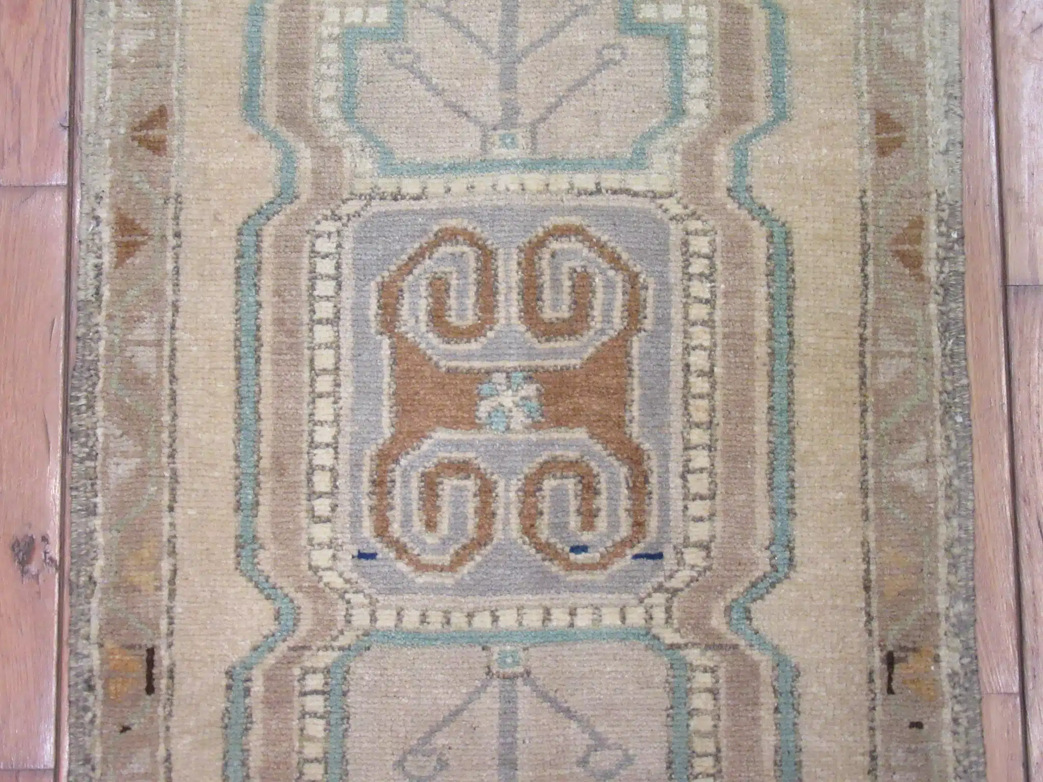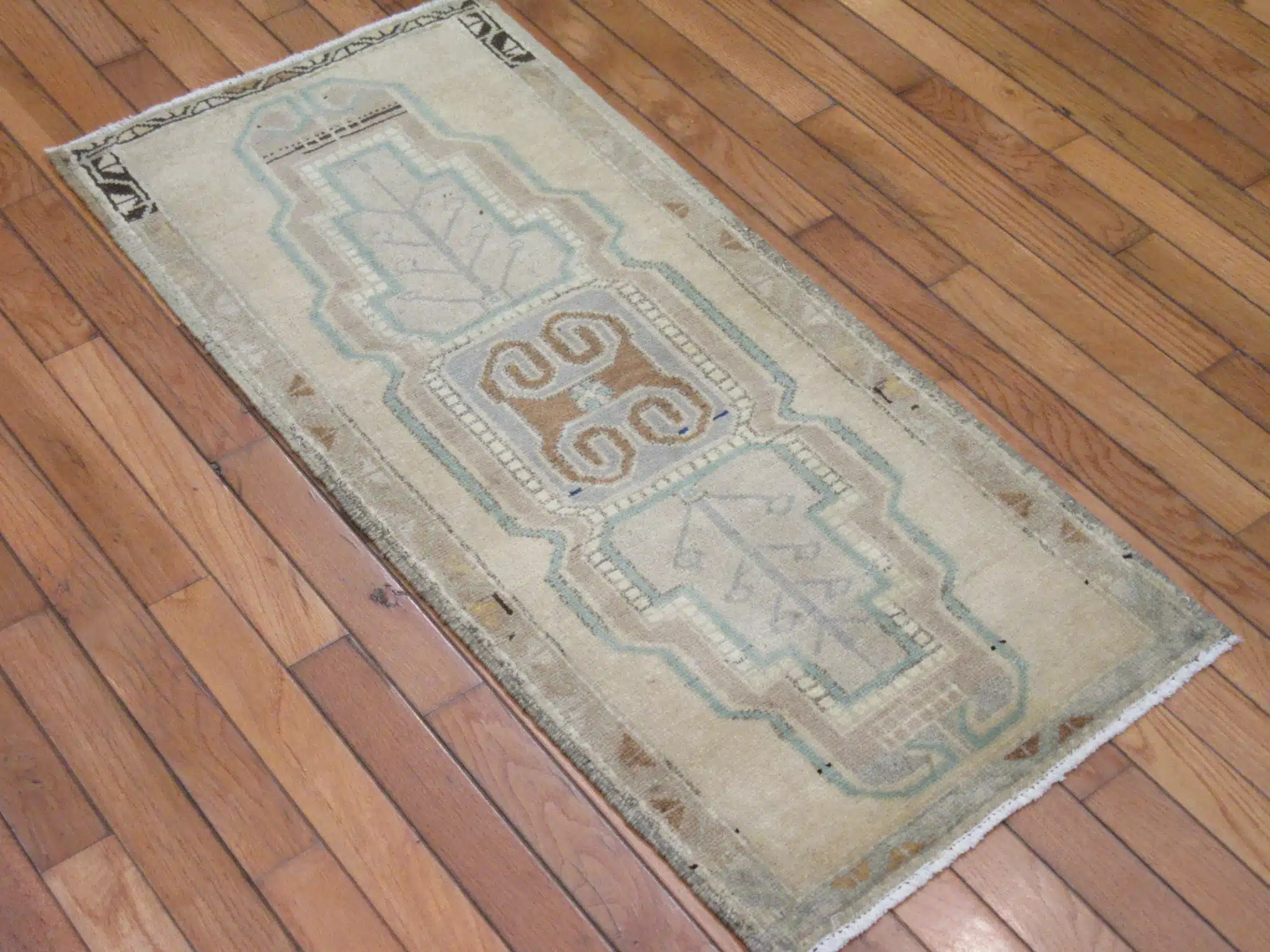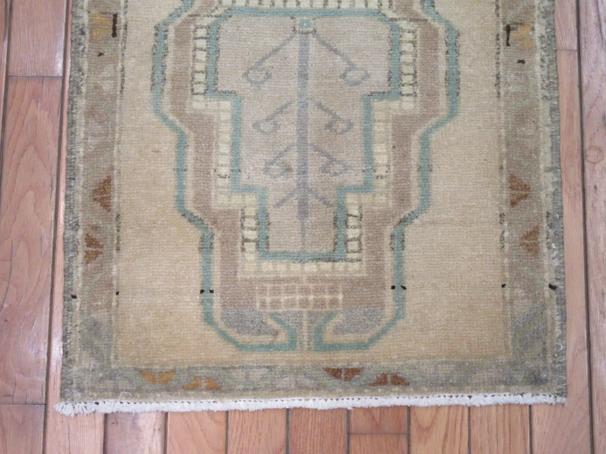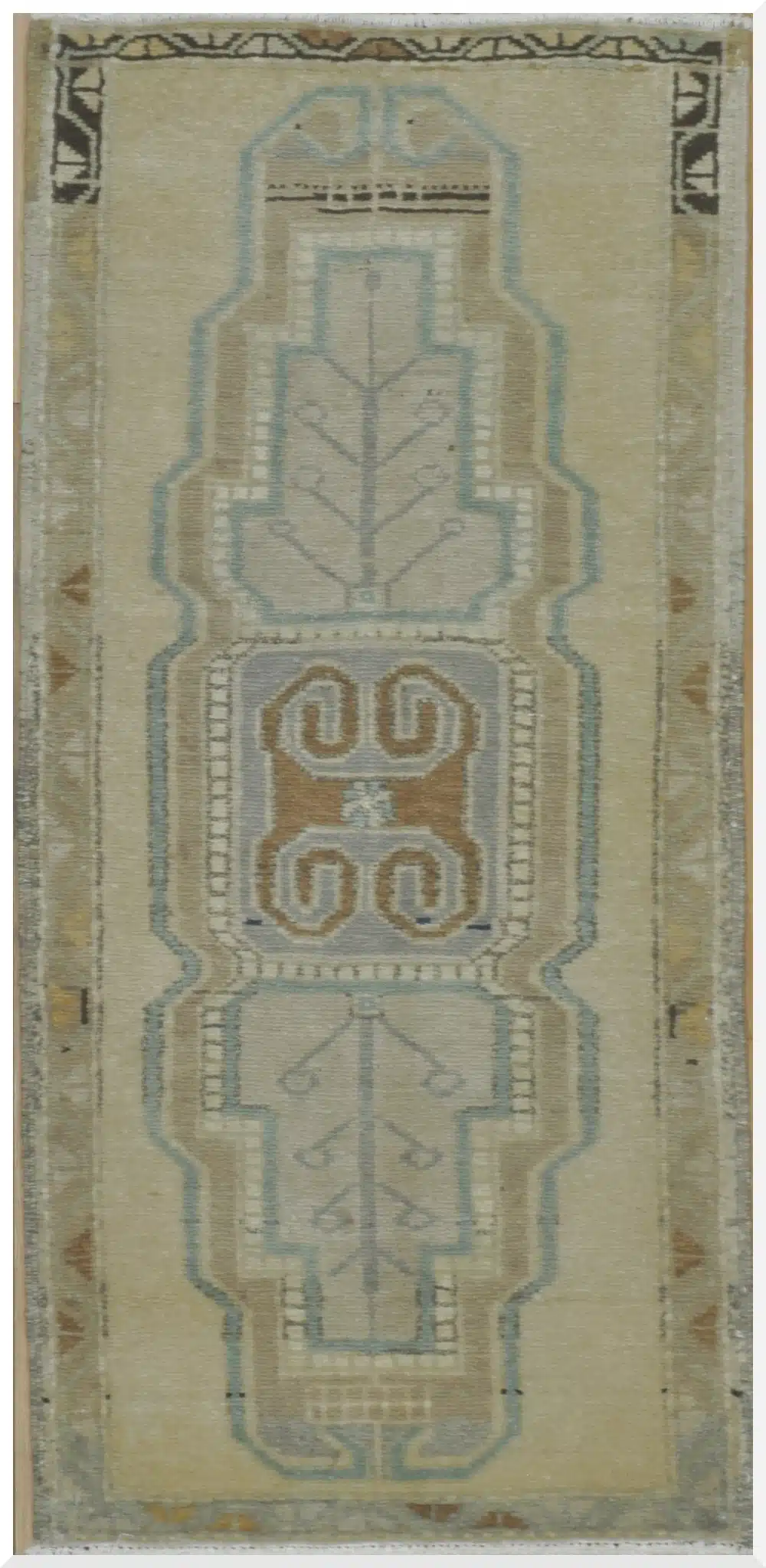 This elegant Turkish runner features a gently faded geometric medallion design enriched by soothing neutral tones and subtle color accents. Its minimalist color palette creates a relaxed and airy aesthetic, allowing the rug to blend effortlessly into both modern and traditional interiors.