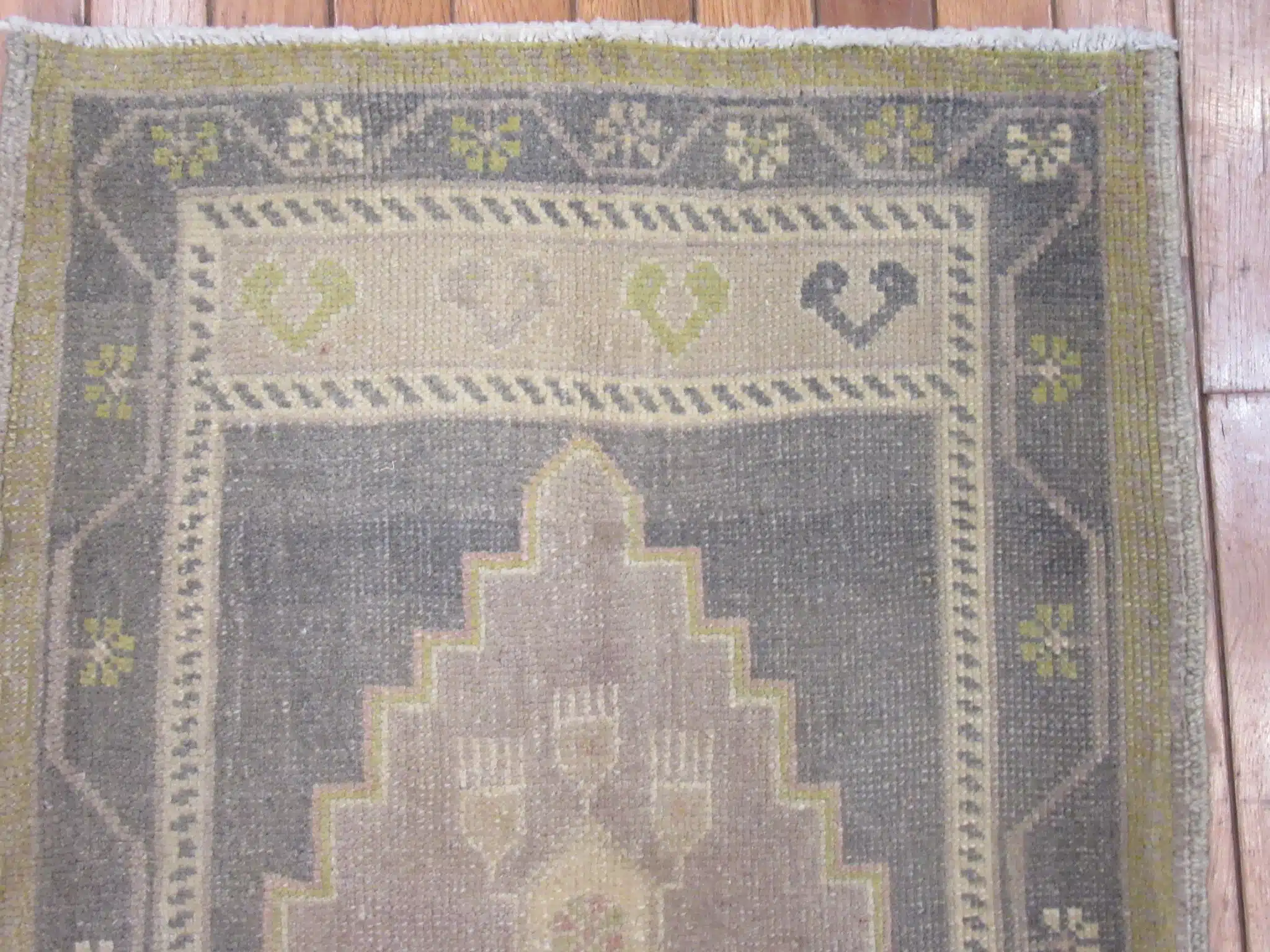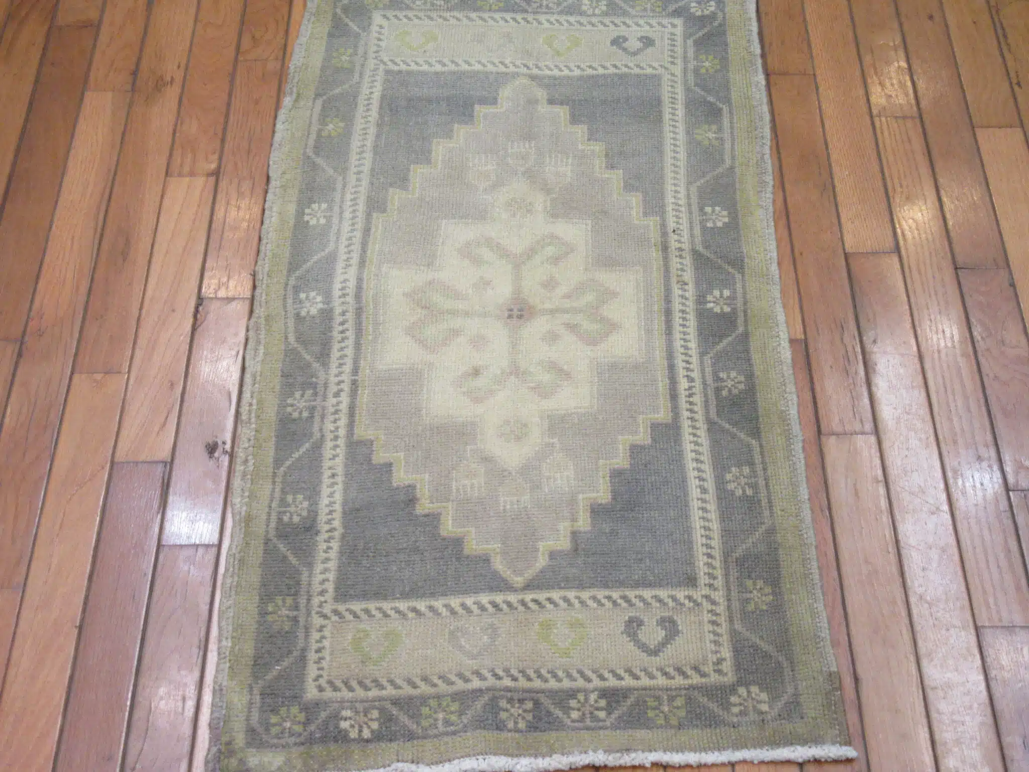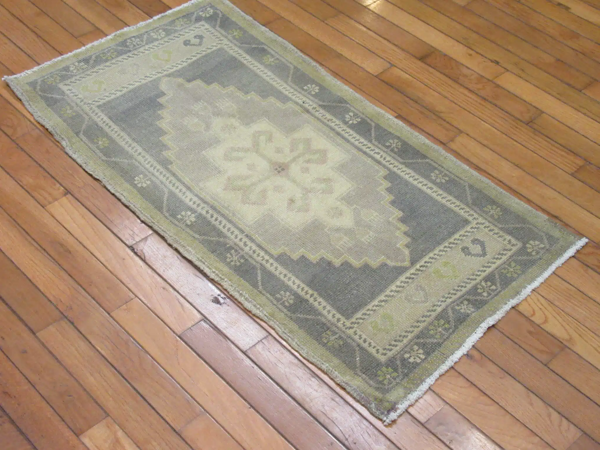 2′ x 4′ Turkish Gray Green Accent Rug Transitional Wool