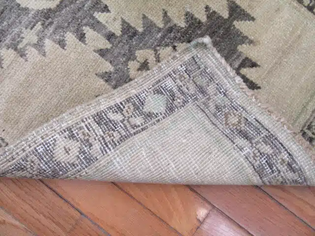 The hand-knotted wool construction creates a sturdy yet flexible pile that resists wear and lies flat in busy areas. The antique washing process softens both color and texture, giving the rug a naturally aged patina that hides everyday dirt well.