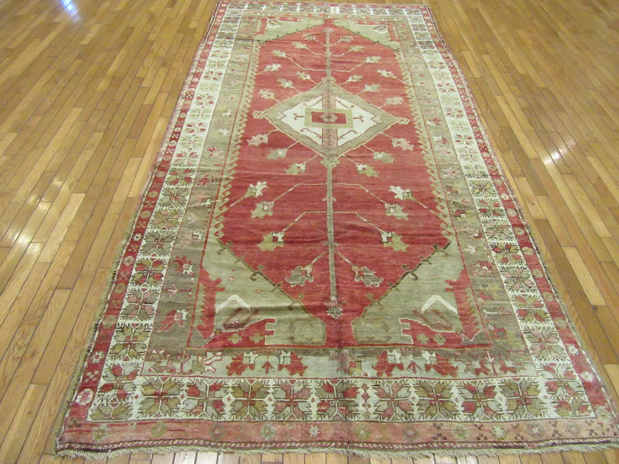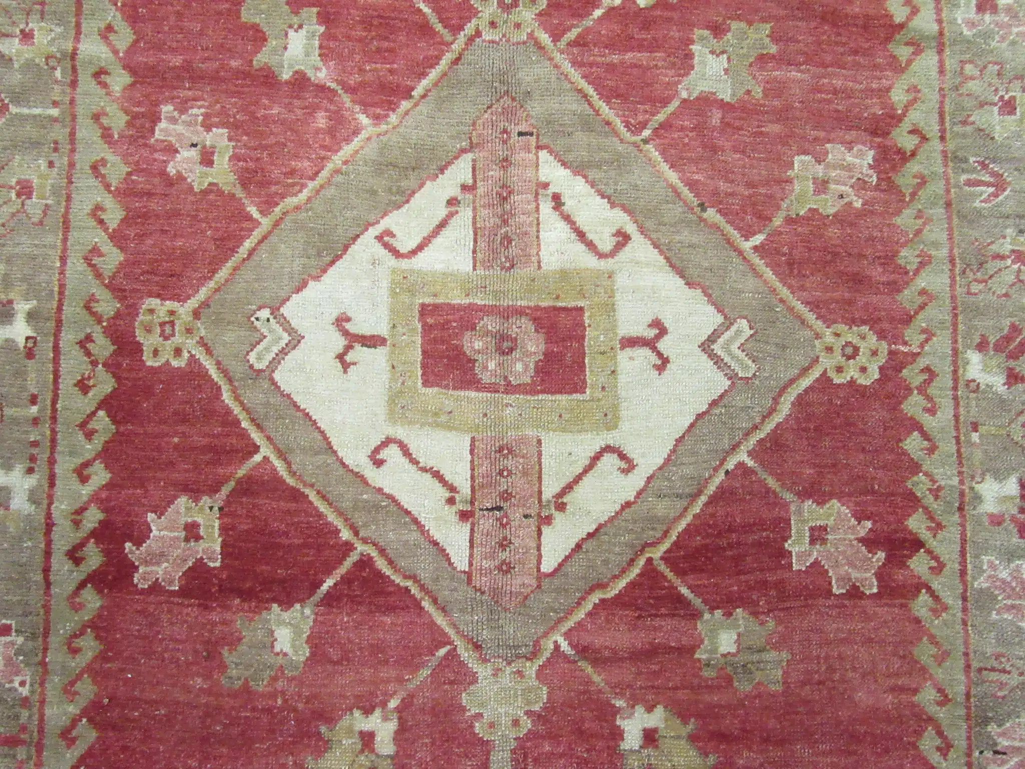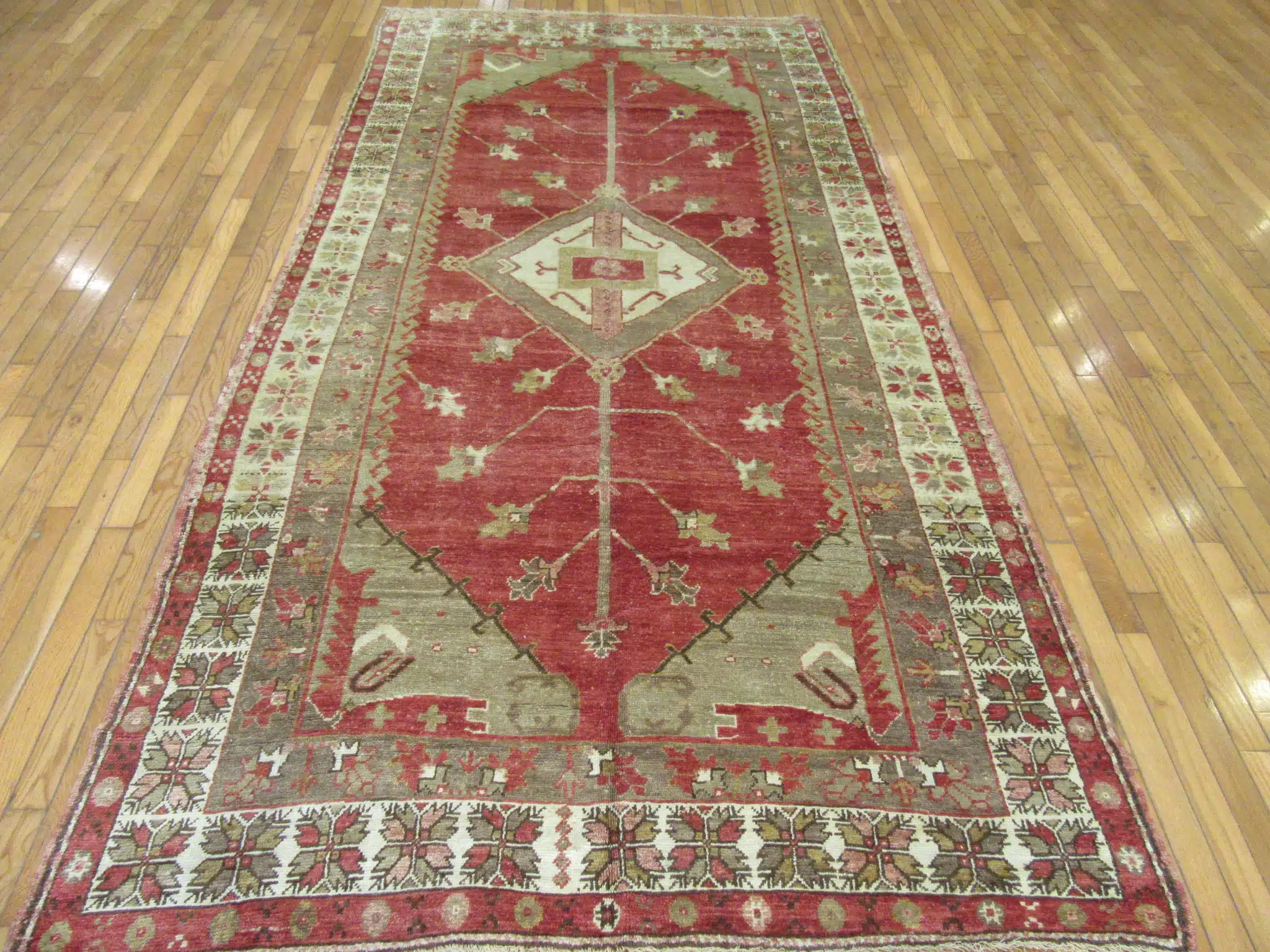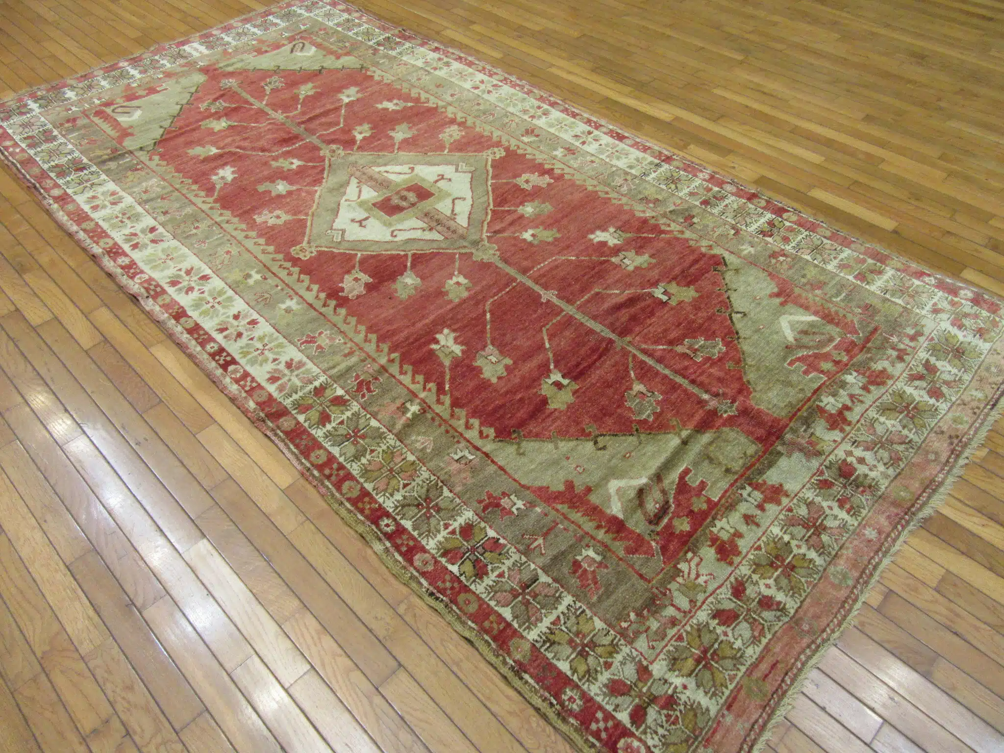 Turkish rugs from the mid-20th century often blend traditional tribal patterns with lighter, more spacious layouts influenced by export demands. This transitional style softens bold Anatolian designs with elegant lines and natural-dyed colors that have faded gently over time. The fine wool pile and hand-knotted construction provide a soft texture and solid durability typical of vintage pieces from this period.