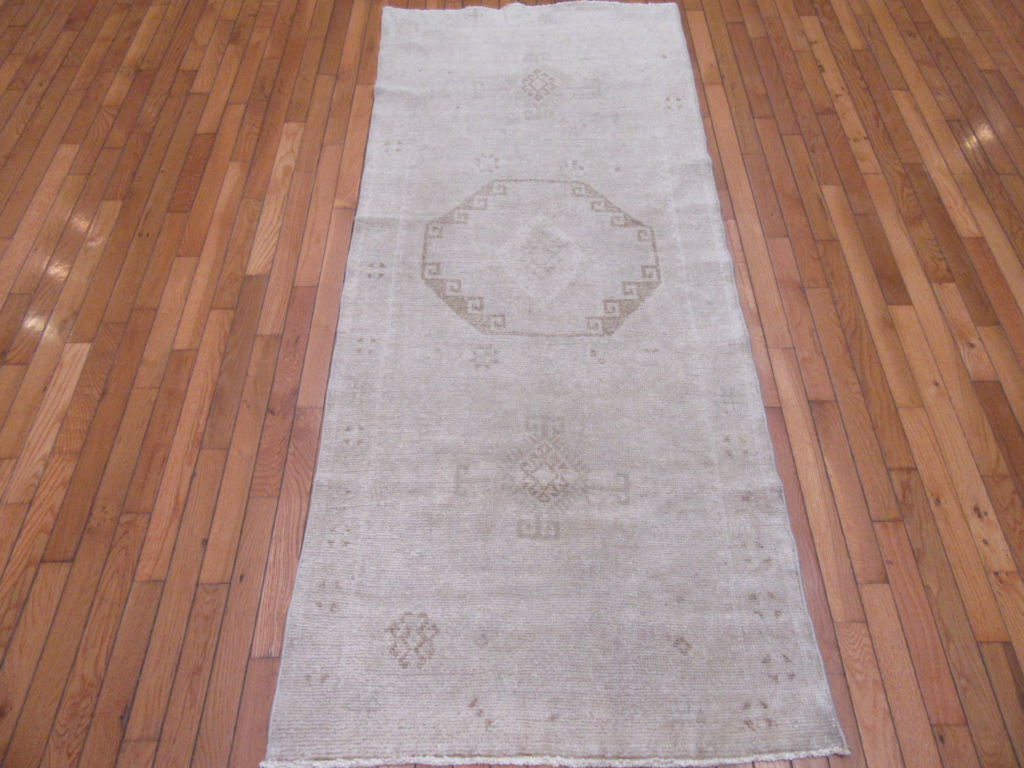 Vintage Short Hand Knotted Turkish Runner Rug