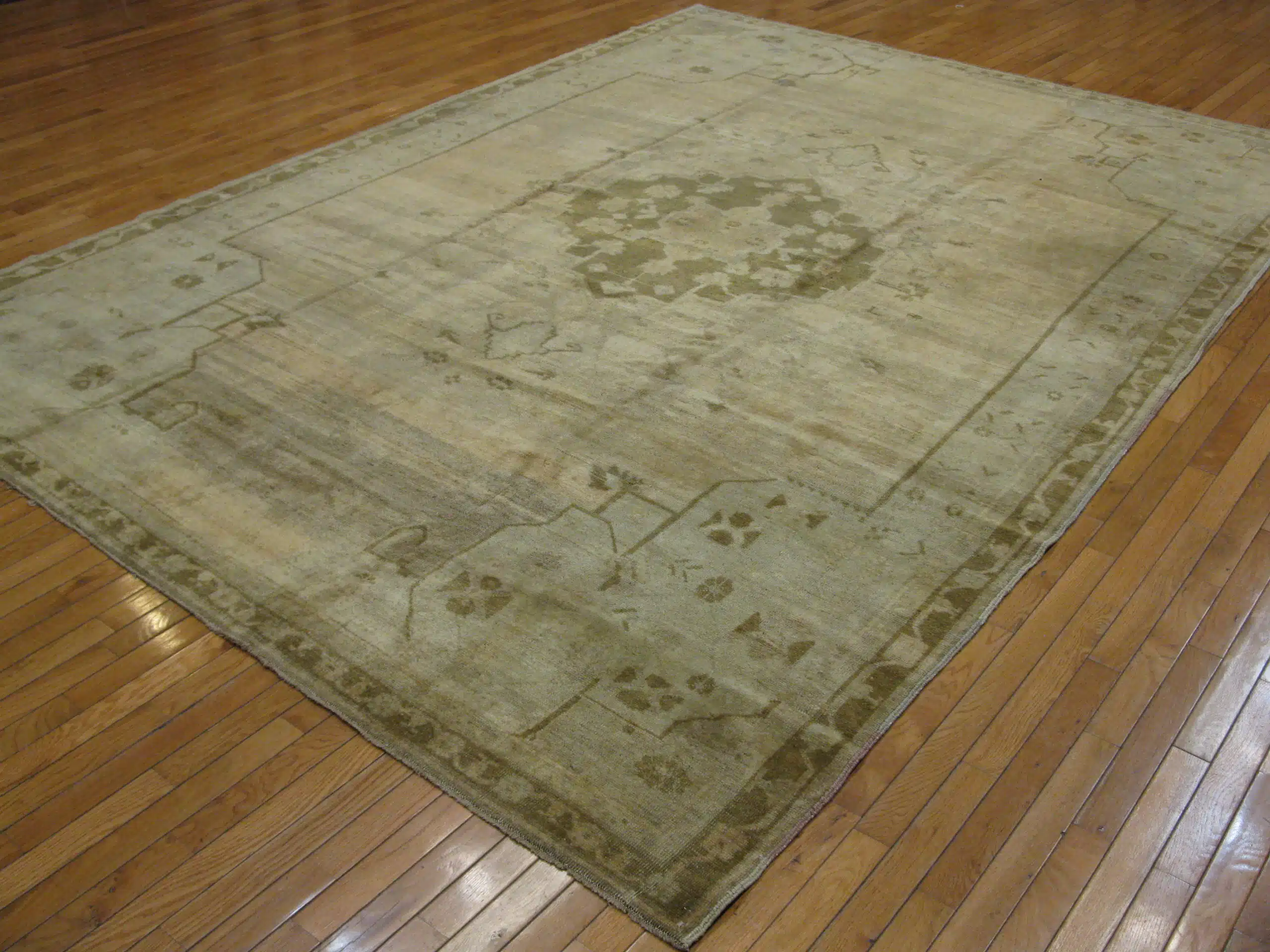 This is a beautiful and finely knotted room size vintage Turkish Kars rug antique washed for softer colors. The rug is in great condition.