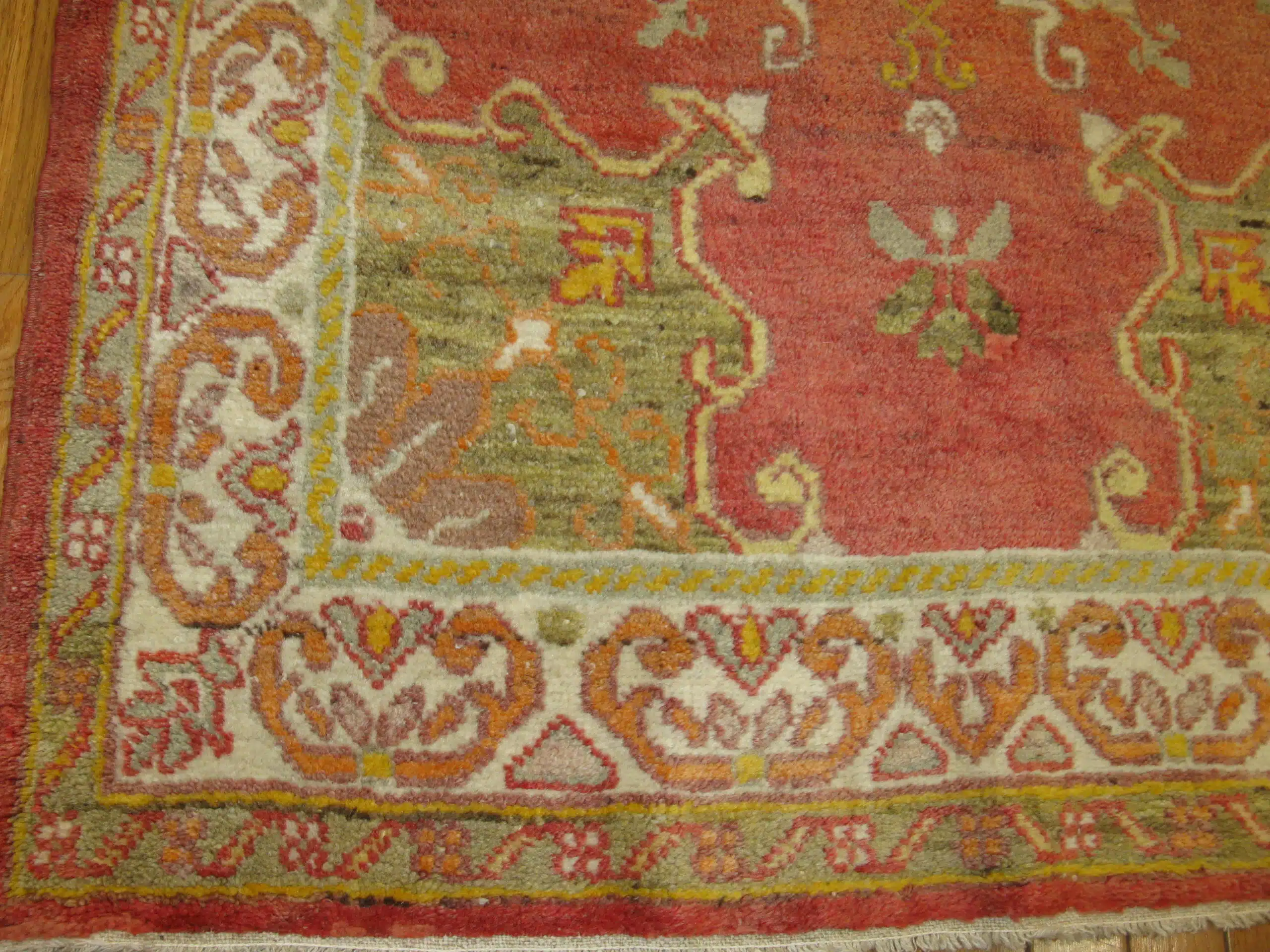 Hand knotted in the Oushak region using high-quality wool and natural dyes, the rug reflects the classic craftsmanship and relaxed elegance Oushak rugs are known for. The softened palette and open composition give it a graceful transitional character that blends traditional motifs with a lighter, decorative feel.