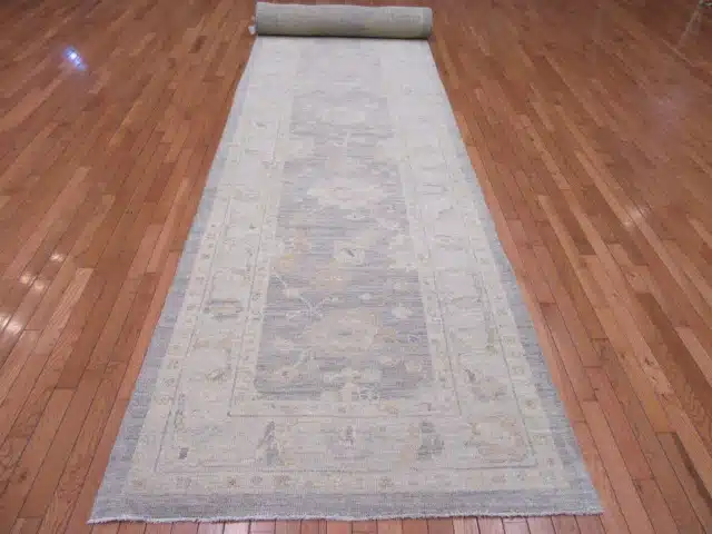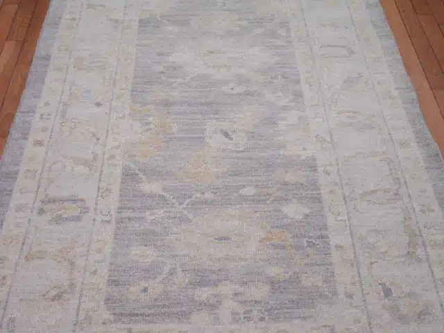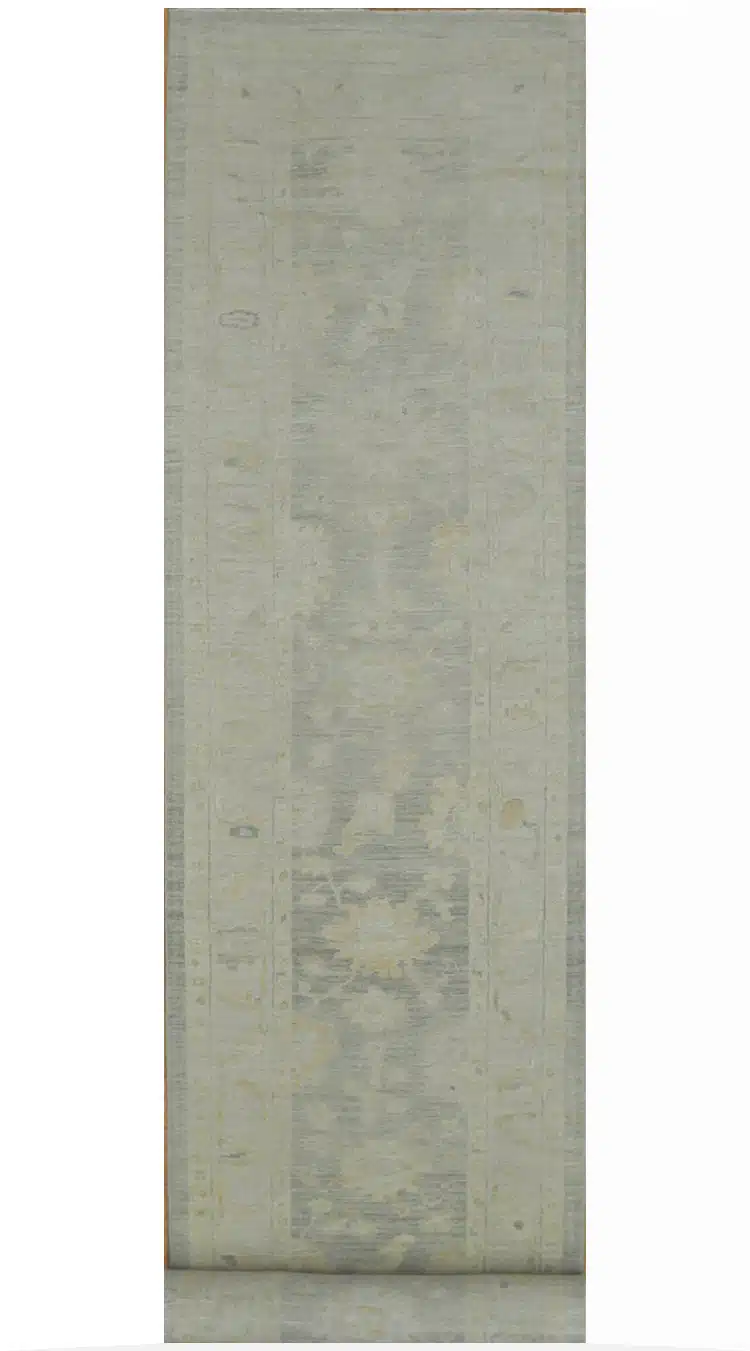 Oushak runners draw from the historic weaving tradition of western Turkey, where large-scale floral and medallion designs were adapted into narrow formats for practical use in long spaces. Modern versions like this one maintain the signature loose weave and grand motifs but use softer, contemporary colors to blend with current interiors. This piece offers timeless appeal with its balanced layout and gentle aging effect.