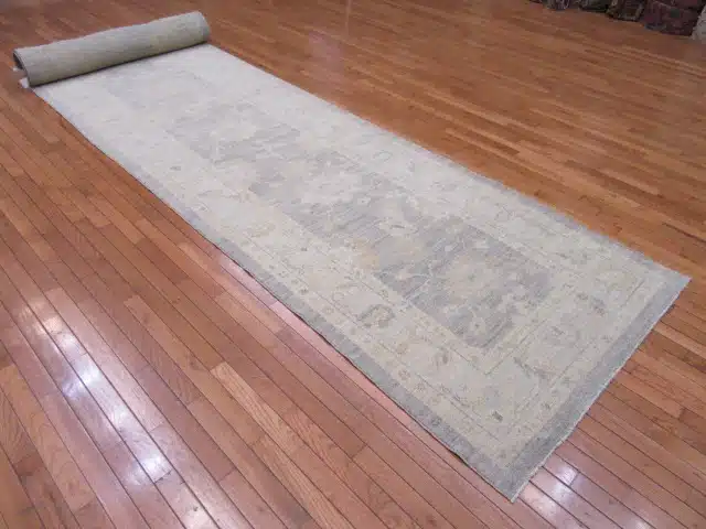 The durable wool construction handles foot traffic well, making this wide runner ideal for grand entryways, wide hallways, or gallery spaces where it can add length and sophistication. Its neutral tones and symmetrical pattern work beautifully with various decor styles while the elongated shape visually extends narrow areas. Regular vacuuming and professional cleaning every few years will preserve the soft colors and maintain the plush pile.
