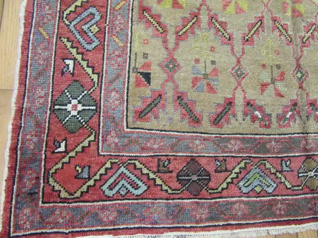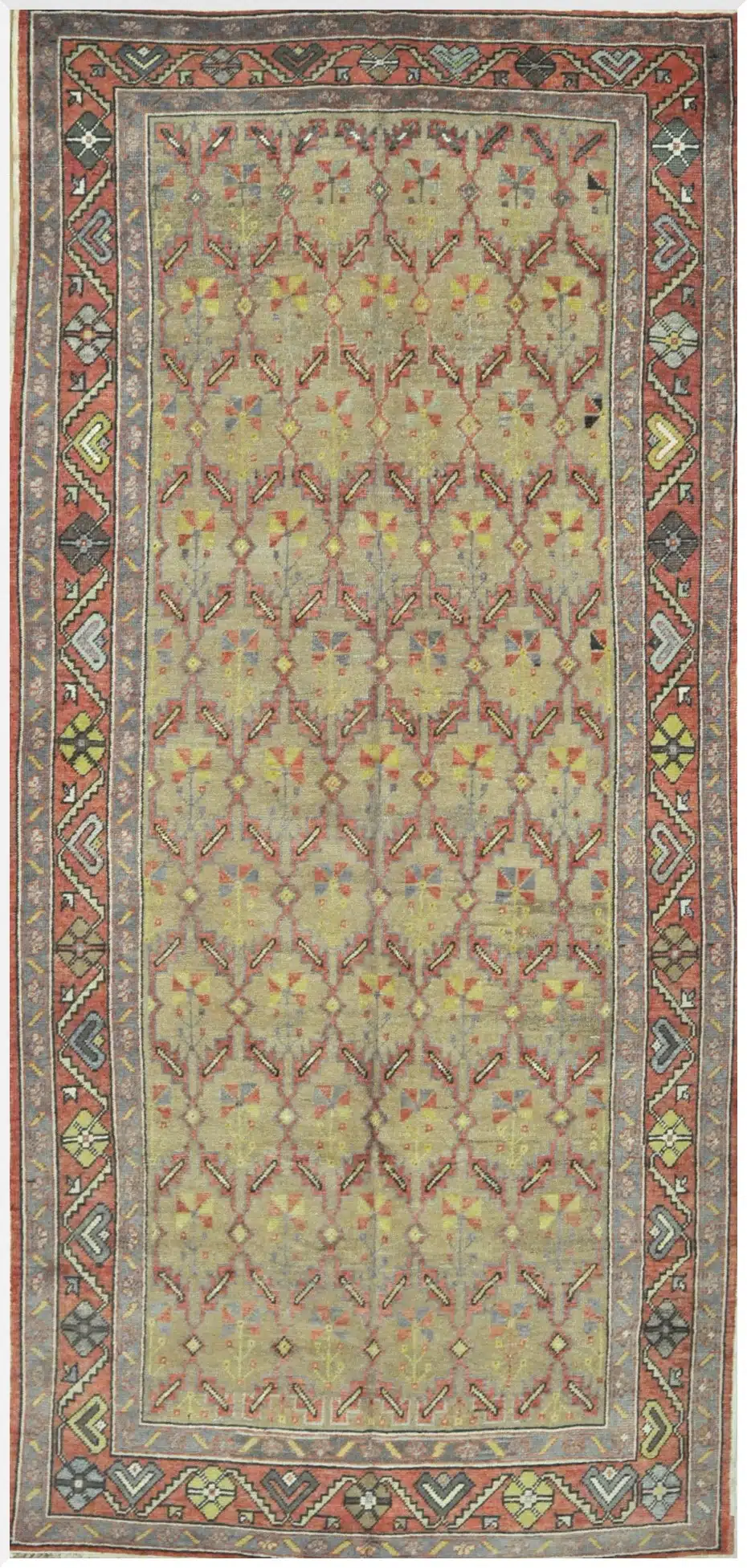 Hand-knotted with fine wool pile on a cotton foundation, this rug demonstrates a tighter weave and lighter handle than heavier tribal pieces. This construction allows for greater detail in the repeating motifs while keeping the rug flexible and durable for everyday use.