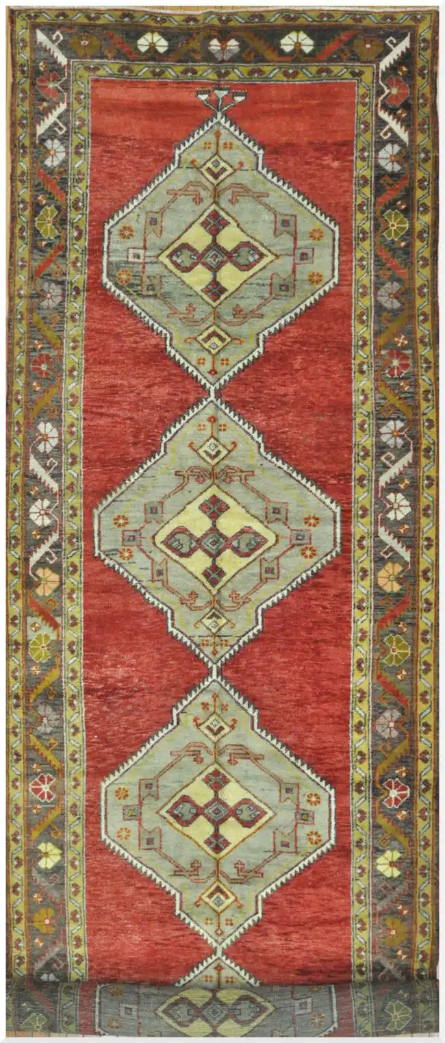 A genuine vintage Turkish runner that combines bold color, traditional craftsmanship, and timeless design.