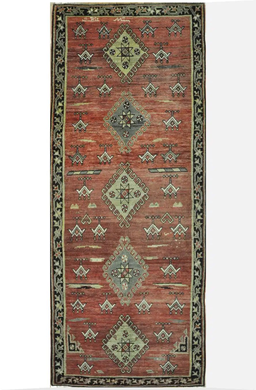 Turkish tribal runners from central and eastern Anatolia were woven by village artisans using simple looms and natural wool dyed with vegetable sources. These pieces often feature strong geometric patterns and earthy colors suited to practical use in hallways and corridors. This wider format example stands out for its generous width and well-maintained pile, making it a rare and versatile vintage find.